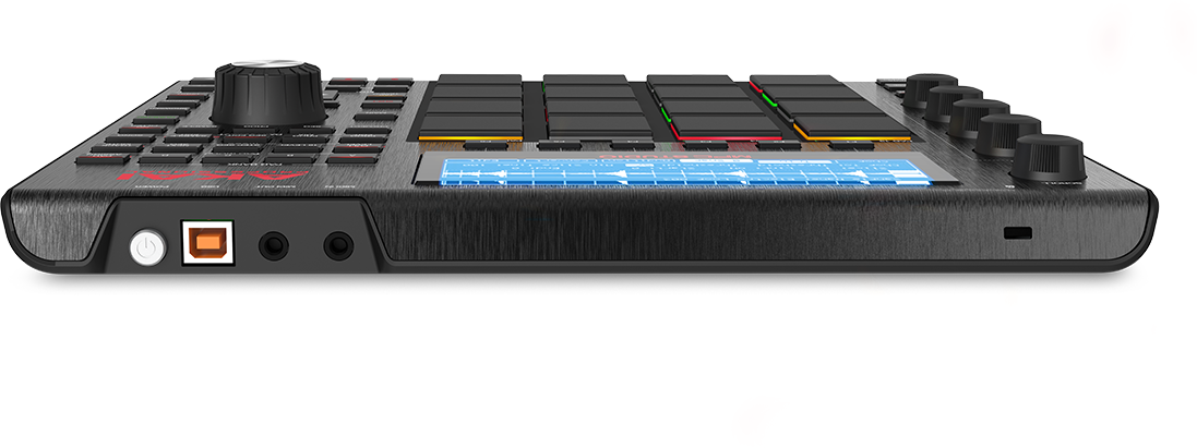 - 16, háttérvilágítással rendelkező eredeti MPC pad, legendás MPC munkamenet és MPC swing
