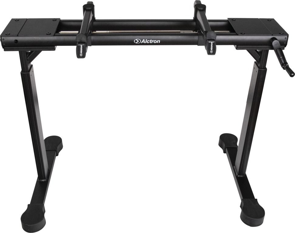 Kurblival állítható magasságú, alumíniumból készült, nagy stabilitású billentyűs állvány álló vagy ülő használathoz egyaránt.