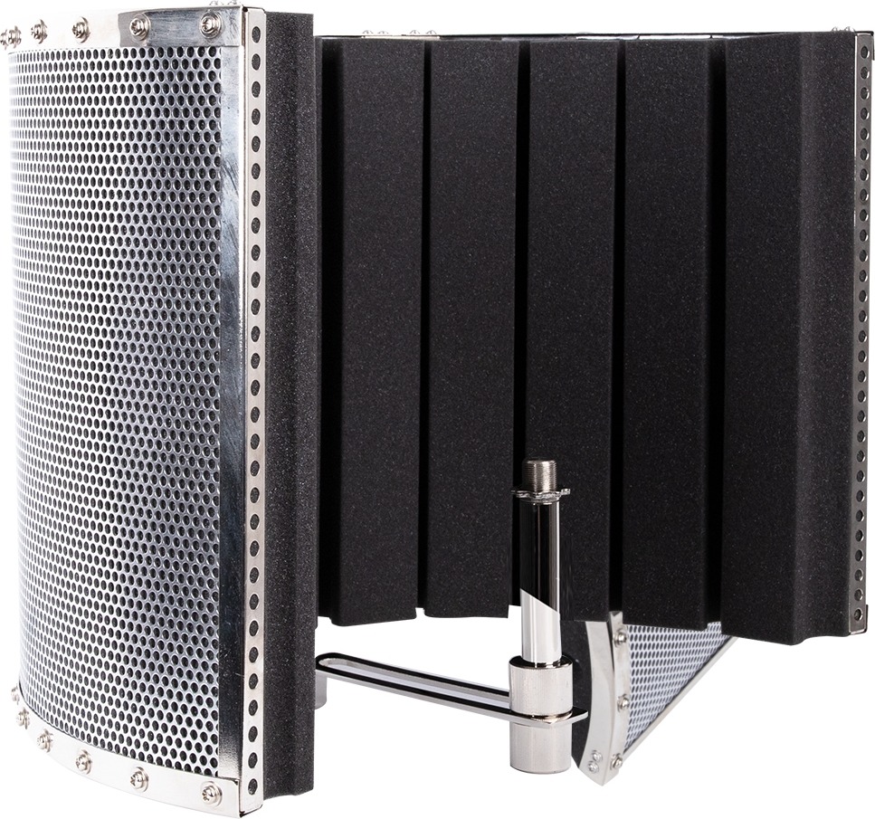 Mikrofonállványra rögzíthető fémkeretes mikrofonernyő, amely javítja az ének- és beszédfelvétel minőségét bármilyen környezetben. Anyaga izolálja a külső nemkívánatos zajokat és csökkenti a visszaverődéseket magasvesztés nélkül. Könnyű és hordozható. Függőleges és vízszintes helyzete állítható.