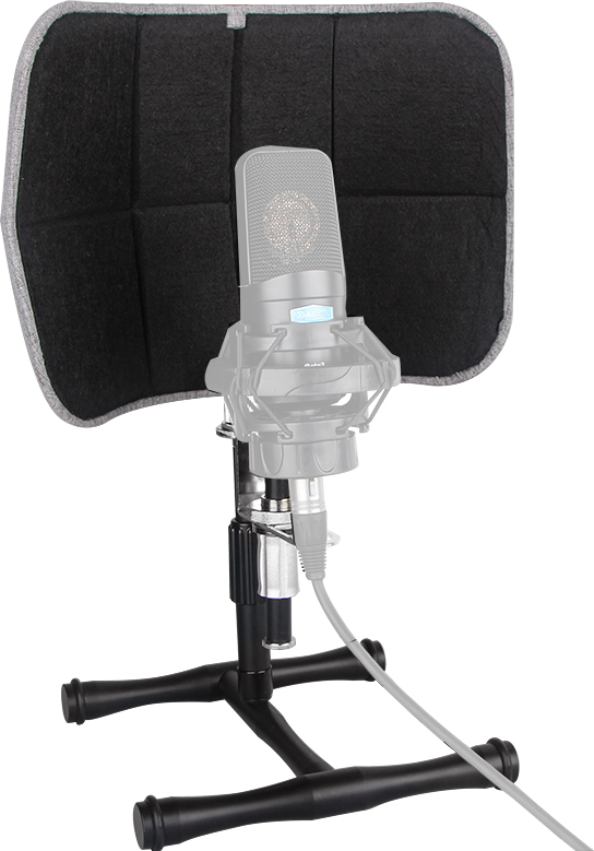 Asztali mikrofonernyő, amely javítja az ének- és beszédfelvétel minőségét bármilyen környezetben. Anyaga izolálja a külső nemkívánatos zajokat. Könnyű, helytakarékos, könnyen hordozható. Magassága és dőlésszöge állítható.