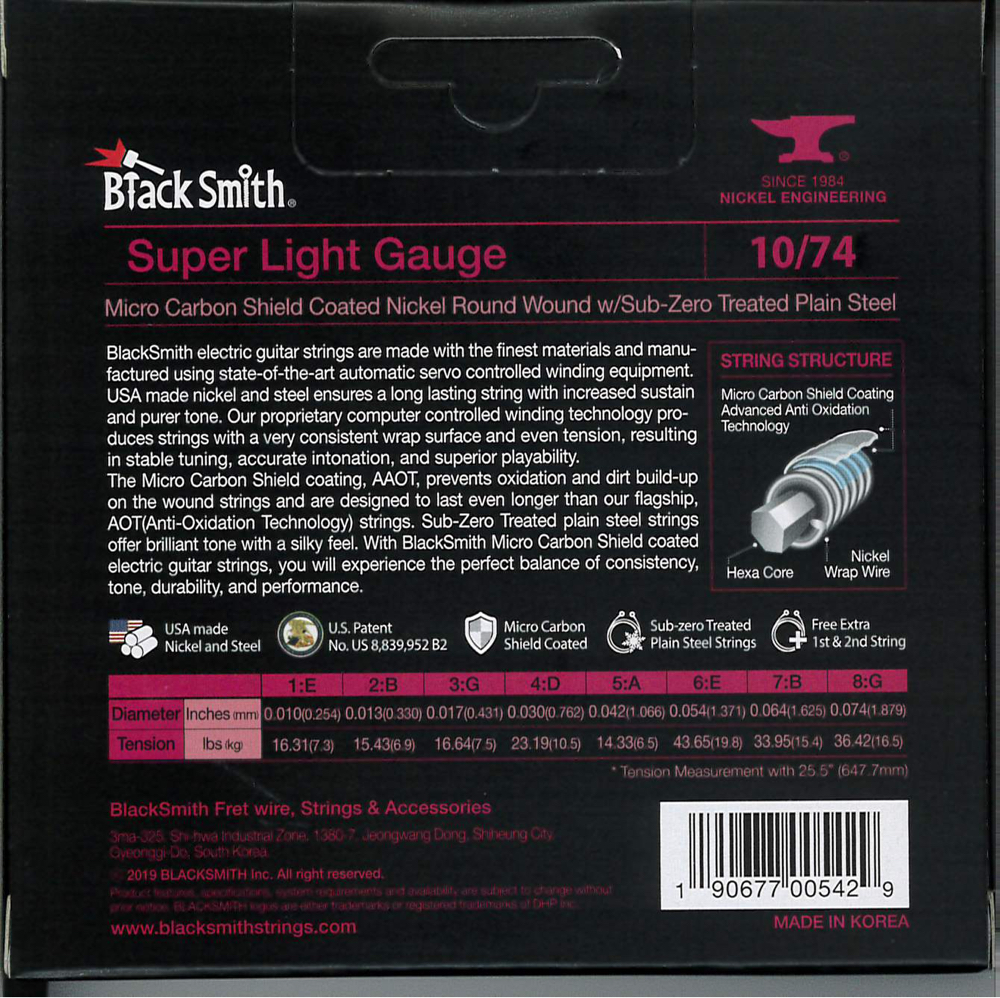 A BlackSmith elektromos gitár húrok a legkiválóbb alapanyagokból készülnek a legmodernebb tekercselő berendezés használatával. Az USA-ban gyártott nikkel és acél hosszú élettartamot és megnövelt hangkitartást biztosít. Számítógépvezérelt technológiával egyenletes tekercselést és húrnyomást kapunk, ami stabil hangolást, pontos intonációt és kiváló játszhatóságot eredményez.
