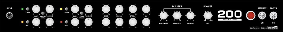 - Vezérlők: Stand By, (Gain, hangerő: Clean, Crunch, OD1, OD2), (kapcsolók: Bright/Warm, Super Crunch, Clean, Crunch, OD1, OD2), (2x: mély, közép, magas, ISF), (Master: Resonance, Presence, hangerő), DPR potméter (dinamikus hangerő csökkentő), effekt jelszint kapcsoló, impedancia váltó