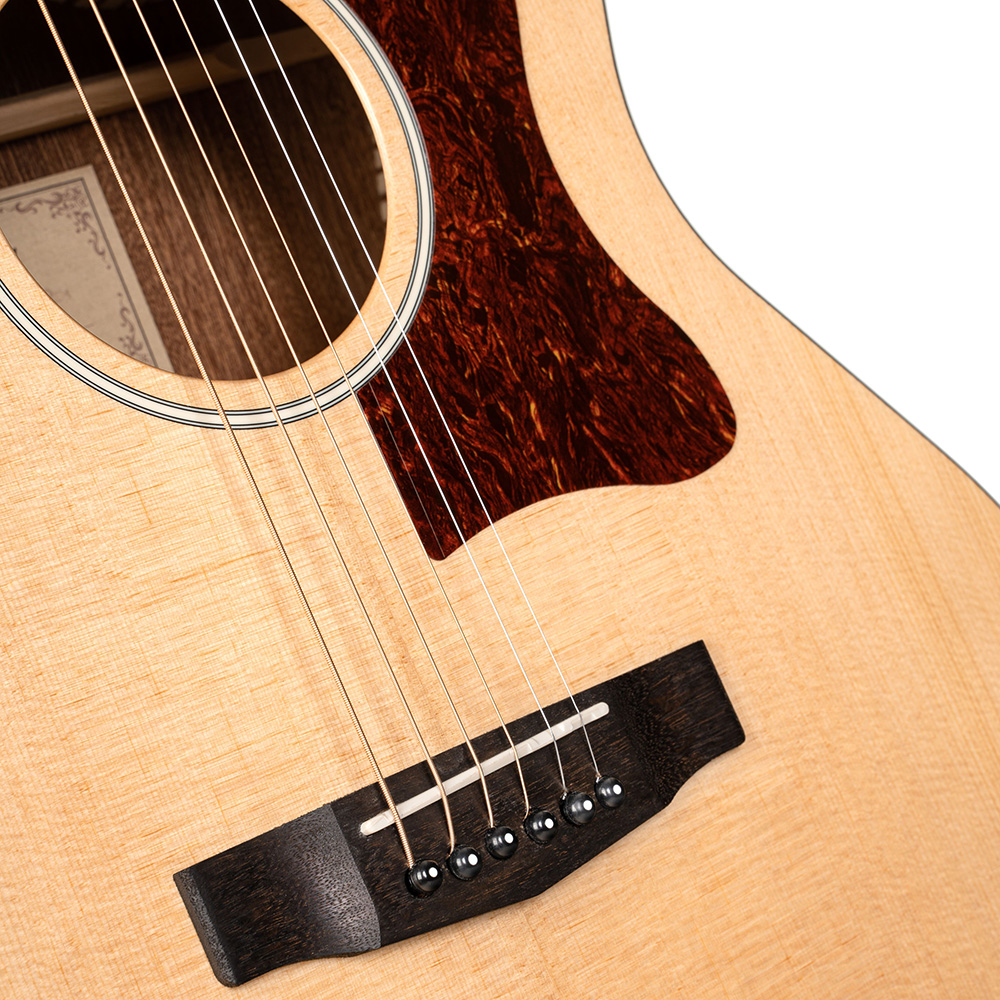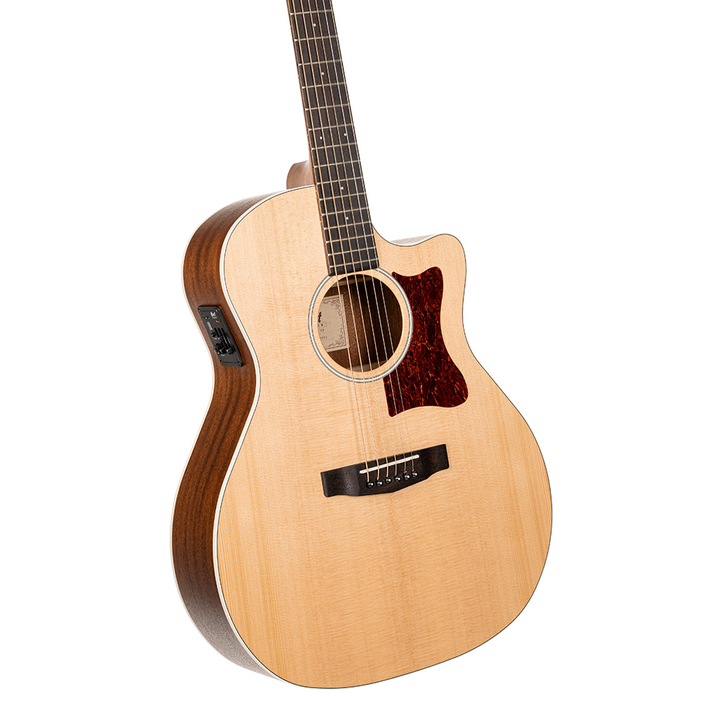 A GA1E modell Grand Auditorium testformájú, könnyen elérhető gitár, teljes és kiegyensúlyozott hangzással. Nagyszerűen használható a mindennapokban, a beépített preamp rendszernek köszönhetően pedig a GA1E élő fellépésekhez is alkalmas.