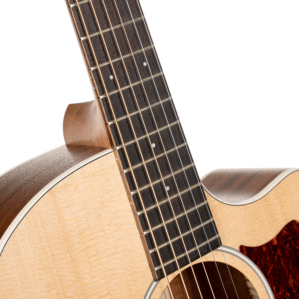 Konstrukció: Grand Auditorium testforma, velencei cutaway, dovetail nyakcsatlakozás