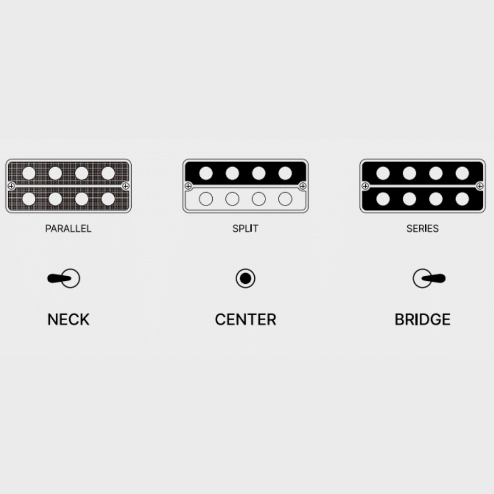 A vezérlőpanel elrendezése tartalmaz egy fő hangerőt, egy 3-sávos EQ-t a pontos hangszínformáláshoz, valamint egy 3-állású választót, amely a pickupot soros, osztott és párhuzamos módok között kapcsolja, így a zenészek könnyedén beállíthatják a hangszínt.