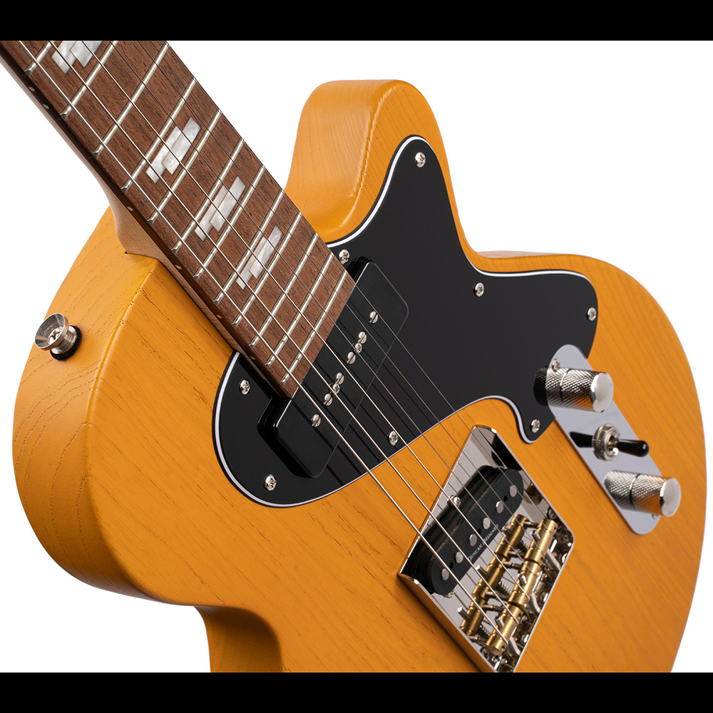 A Sunset TC egy egyedi hibrid dizájn, mely két ikonikus tömörtestű gitárt egyesít. Az orrhangú „twang” híd pick-up és a kövér „P90” soapbar-stílusú nyak pickup kombinációja sokoldalú hangszerré teszi a klasszikus rock, blues, country, pop, funk műfajokat kedvelő gitáros kezében, aki számára fontosak az autentikus zenei gyökerek. Az újragondolt multi-ply black koptatólap és a fogólapon lévő egyedi dupla négyzet berakások eredménye ez az ízig-vérig vintage gitár, mely emellett megfizethető árkategóriát képvisel.