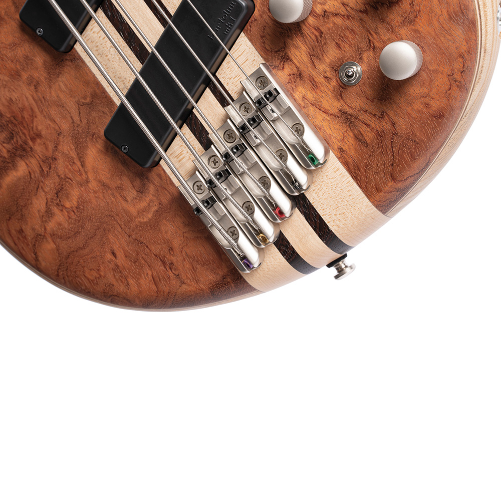 Az A5 Beyond a Cort modern basszusgitár-koncepciója. Az új A5 Beyond single-cutaway testformája kiváló test-nyak egyensúlyt teremt, míg a 35,5” — 34” multi-scale fogólap kiváló, komfortos játszhatóságot és a mély regiszterek hibátlan, tökéletes dinamikai megszólalását teszi lehetővé. Az A5 Beyond gyönyörű mélyvörösben pompázó Bubinga fedlapot kapott, melynek átható hangkitartása, meleg egyenletes hangja kiegészíti a kőris test magasközepeit. Az eredmény egy kiváló basszusgitár a legigényesebb zenészek számára.