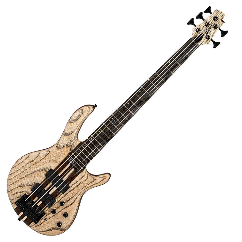 Cort A5UltraAsh-ENB with case elektromos basszusgitár, 5 húros, Fishman hangszedő, keménytokkal, natúr fekete erezettel