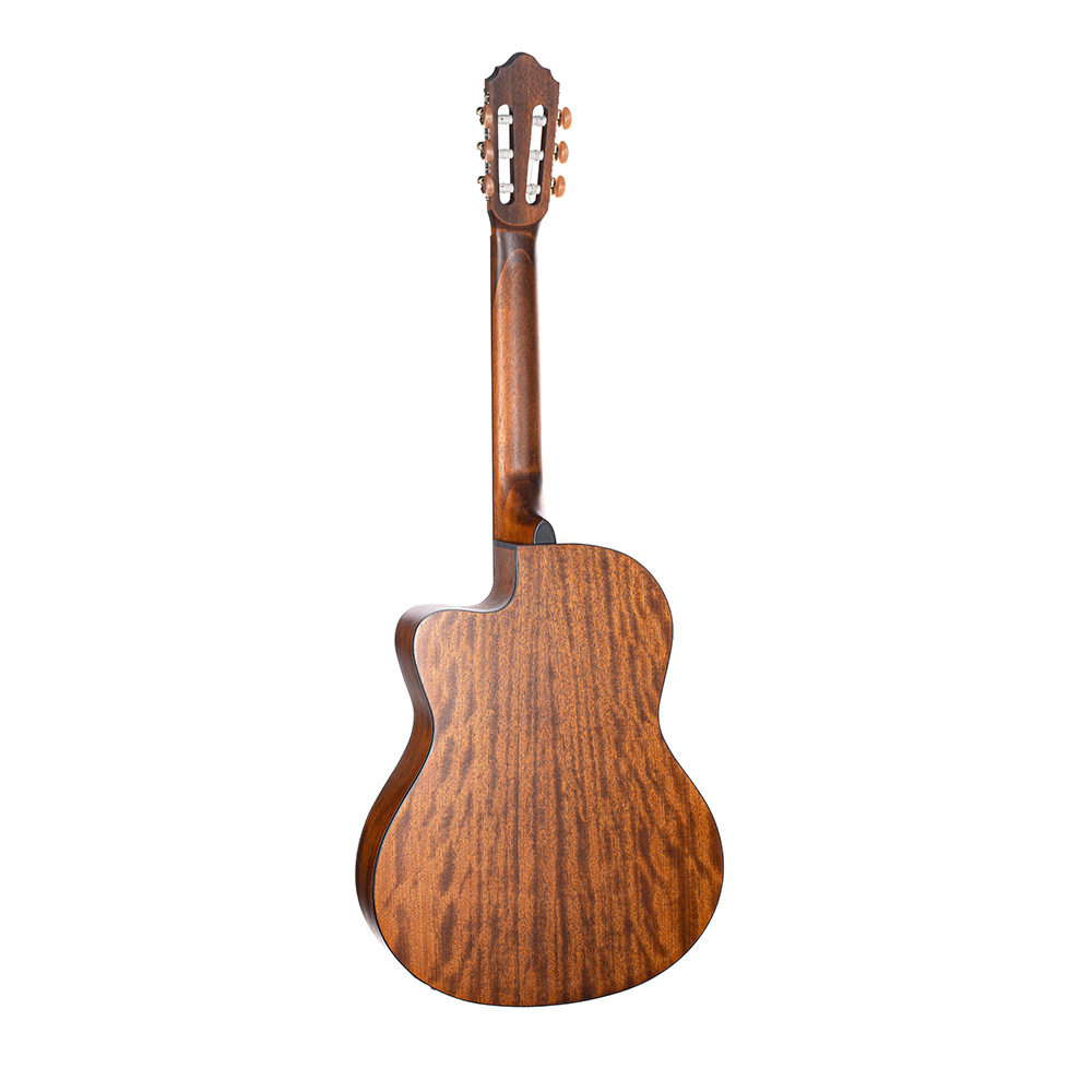 A hagyományos stílusú AC-modelleket újraterveztük annak érdekében, hogy egy tökéletesebb rezonanciát adjunk az autentikus klasszikus gitár hangzásának. A faanyagok remek kombinációjával hagyományos, mély és csodálatossan teli hangzást érhetünk el. A Cort AC széria a tanulók számára is megkönnyíti a játékot, mivel nem szükséges tökéletes precizitás a jó hangzás érdekében. Az AC120CE cutaway elektro-akusztikus gitár fenyő fedlappal, mahagóni hát- és oldallapokkal és babér fogólappal rendelkezik és Savarez húrokkal van szerelve.