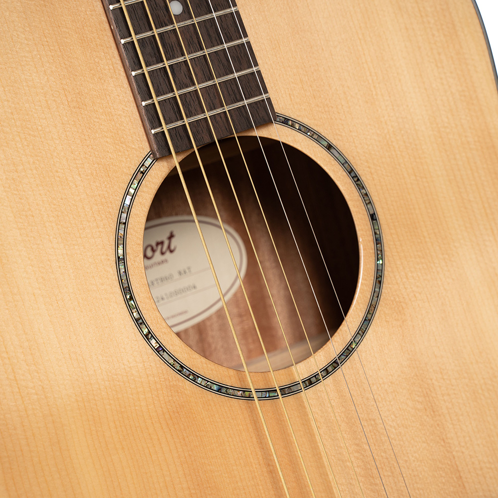 A Cort tisztelgése a nagyszerű vintage akusztikus gitárok előtt, az Earth sorozat az említett kiváló hangszerek megjelenését, hangzását, tapintását és játszhatóságát képviseli, kompromisszumok nélküli minőséggel és kiváló ár-érték arányban. Az Earth60 az akusztikus gitárok aranyszínvonalát képviseli: tömör lucfenyő tető. Ez a fa kombinálva a mahagóni háttal és oldalakkal együtt biztosítja azt az időtálló, jellegzetes, fényes, mégis telt hangzást, amelyet a játékosok mindenhol szeretnek és vágynak, míg a teljes méretű dreadnought test teljes testteljesítményt és projekciót kínál.