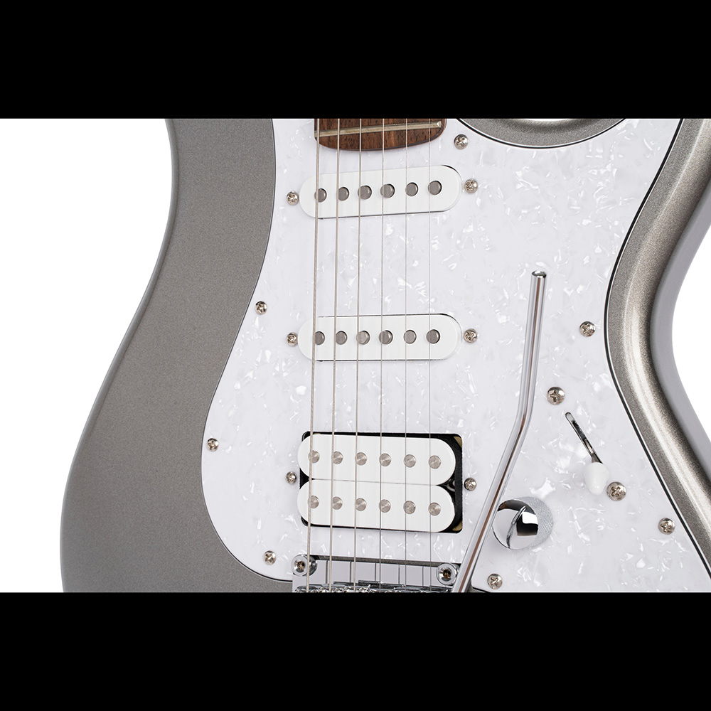 Cort G250-SVM elektromos gitár, amerikai hárs test, Alnico V hangszedővel, ezüst