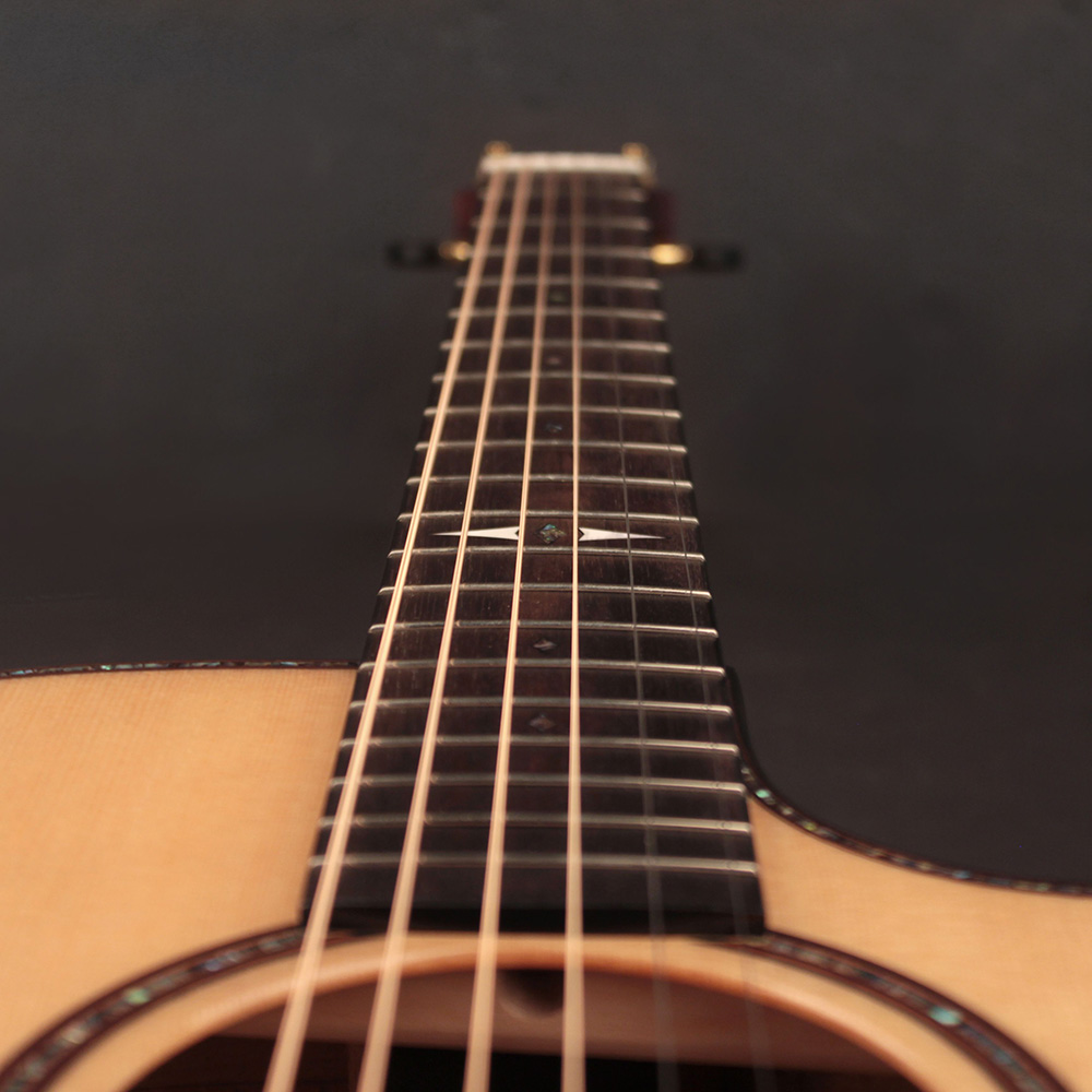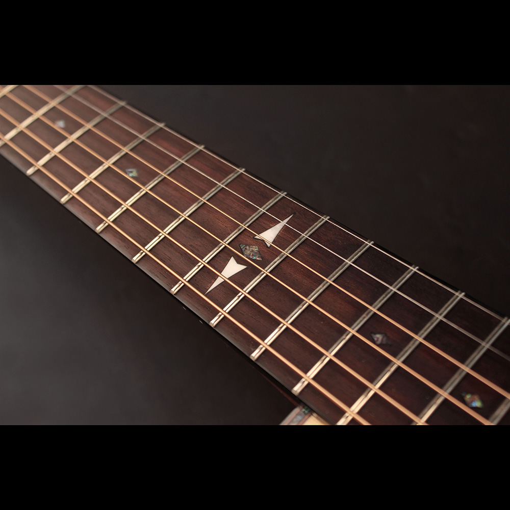 Konstrukció: Grand Auditorium testforma, velencei cutaway, Dovetail nyakcsatlakozás, bevel kartámasz