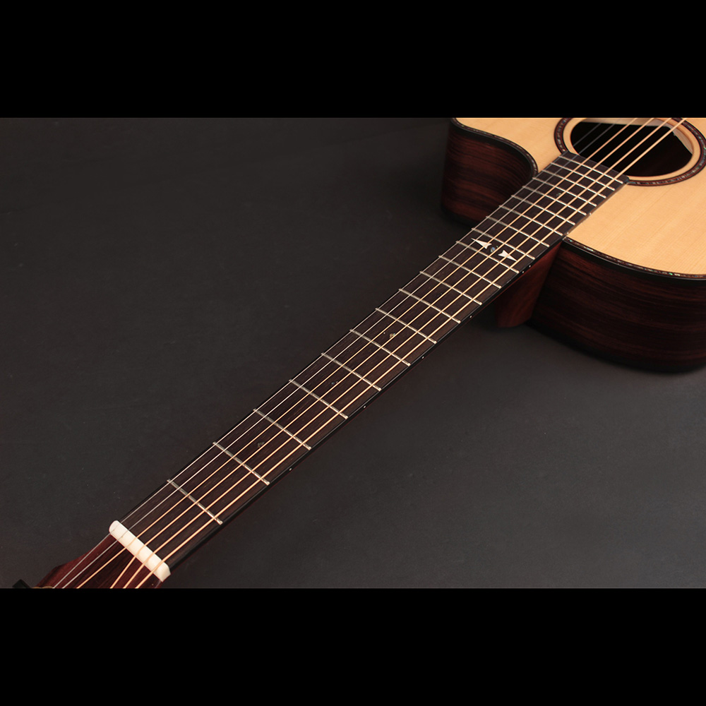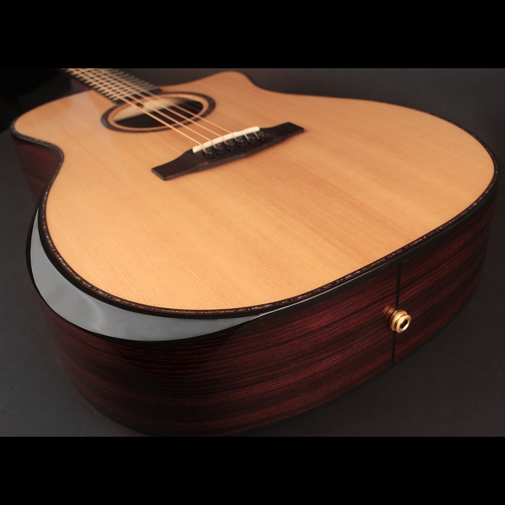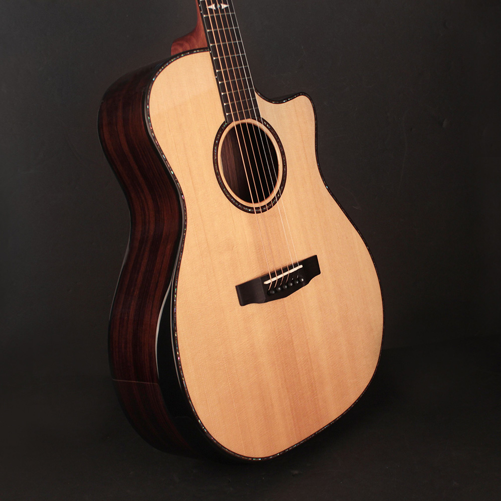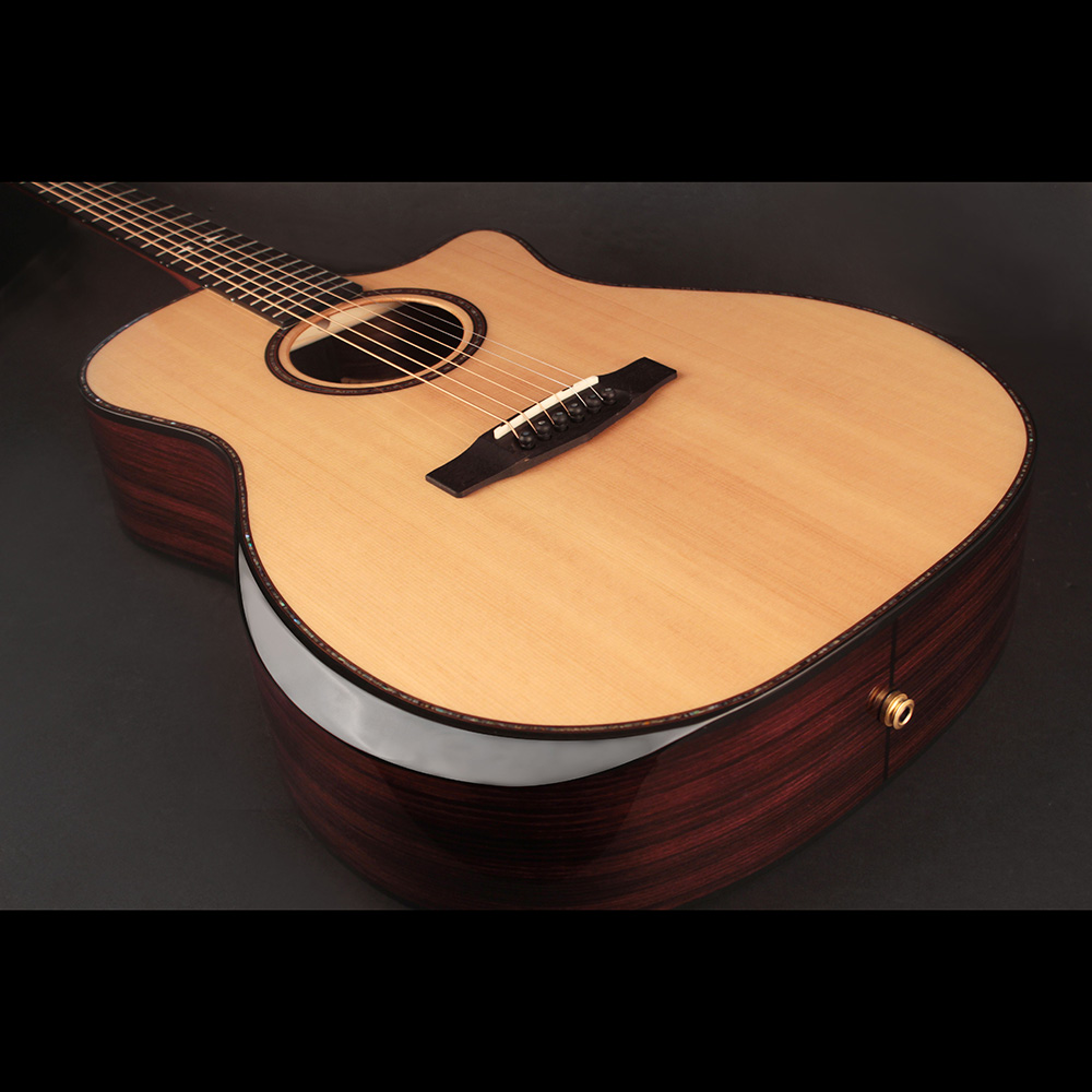 Konstrukció: Grand Auditorium testforma, velencei cutaway, Dovetail nyakcsatlakozás, bevel kartámasz