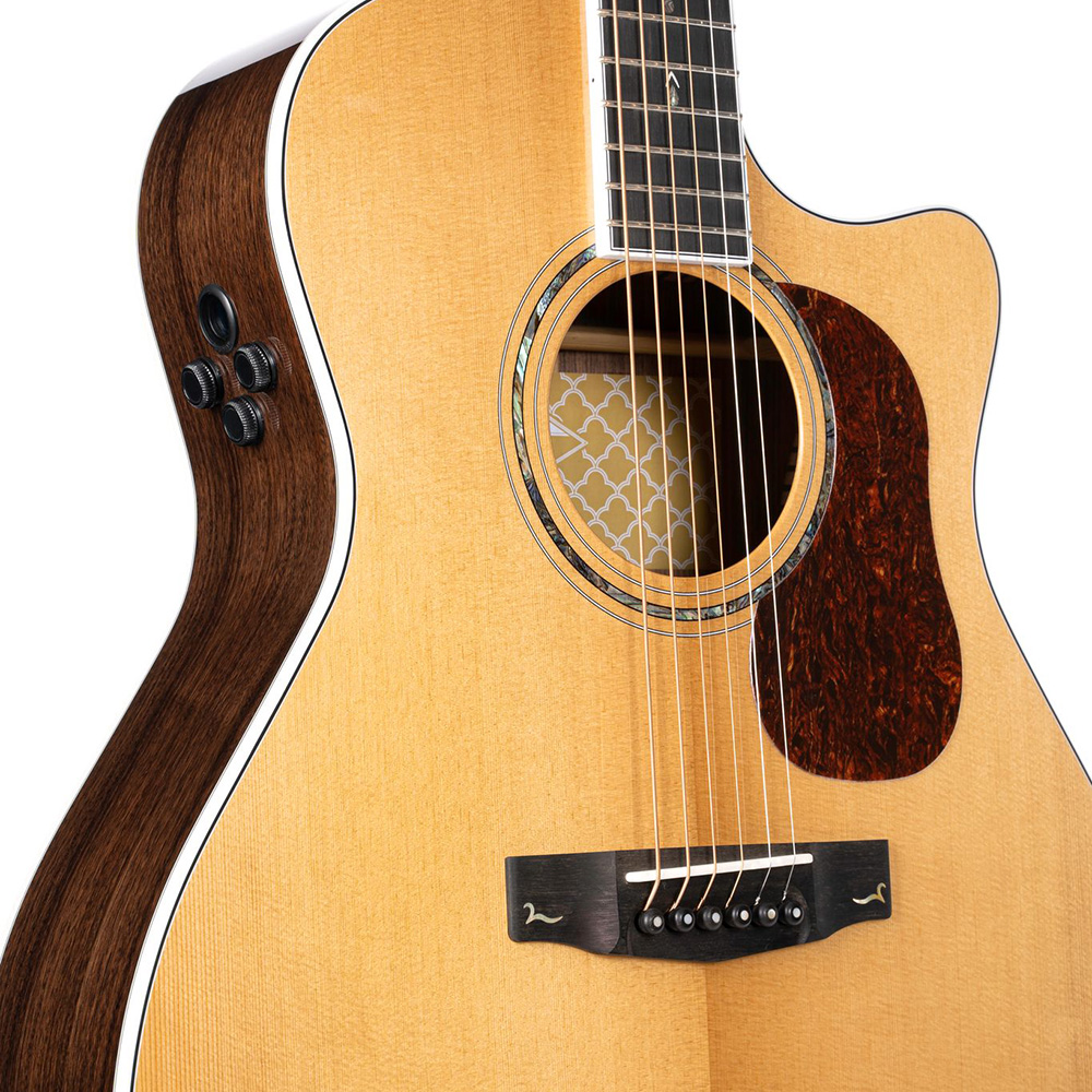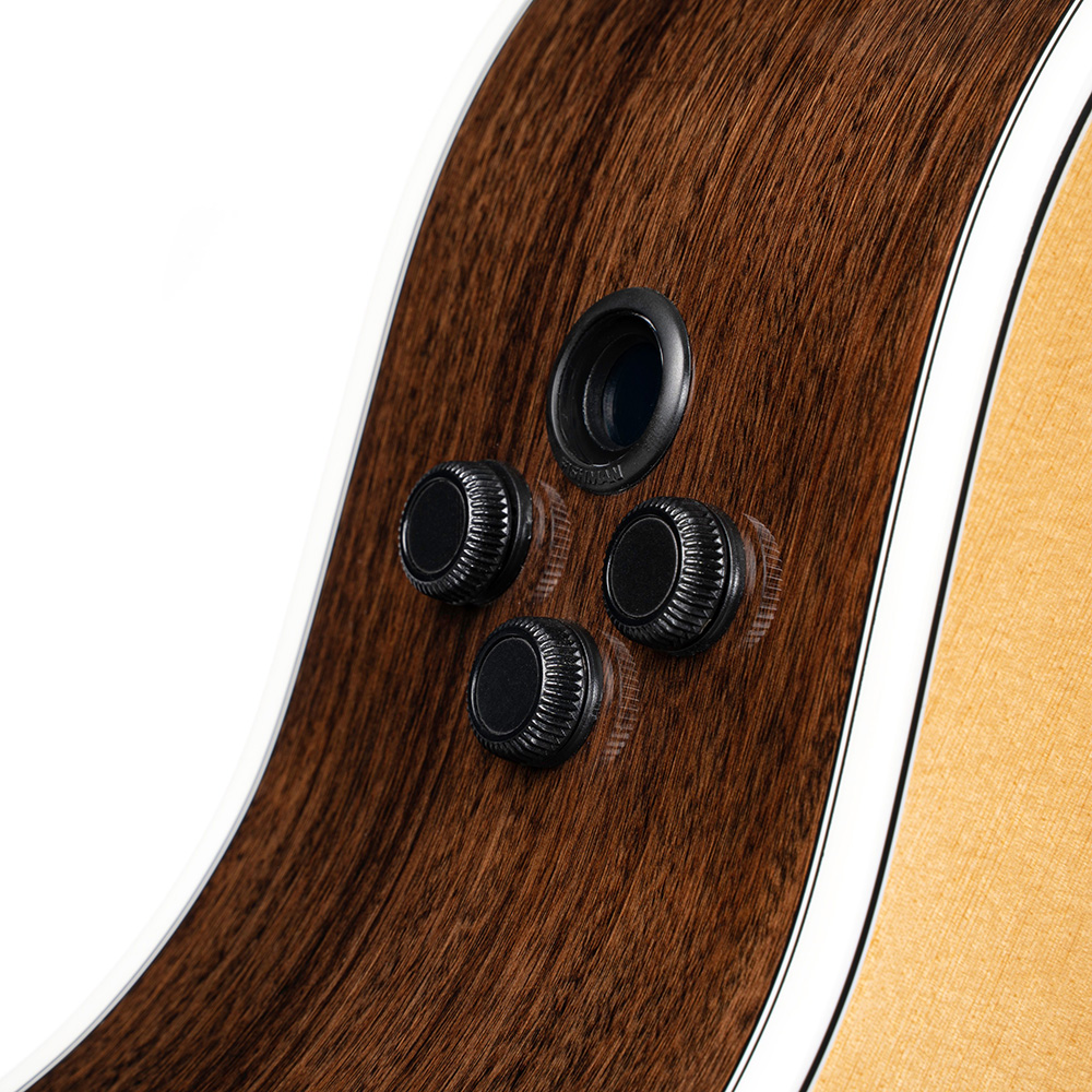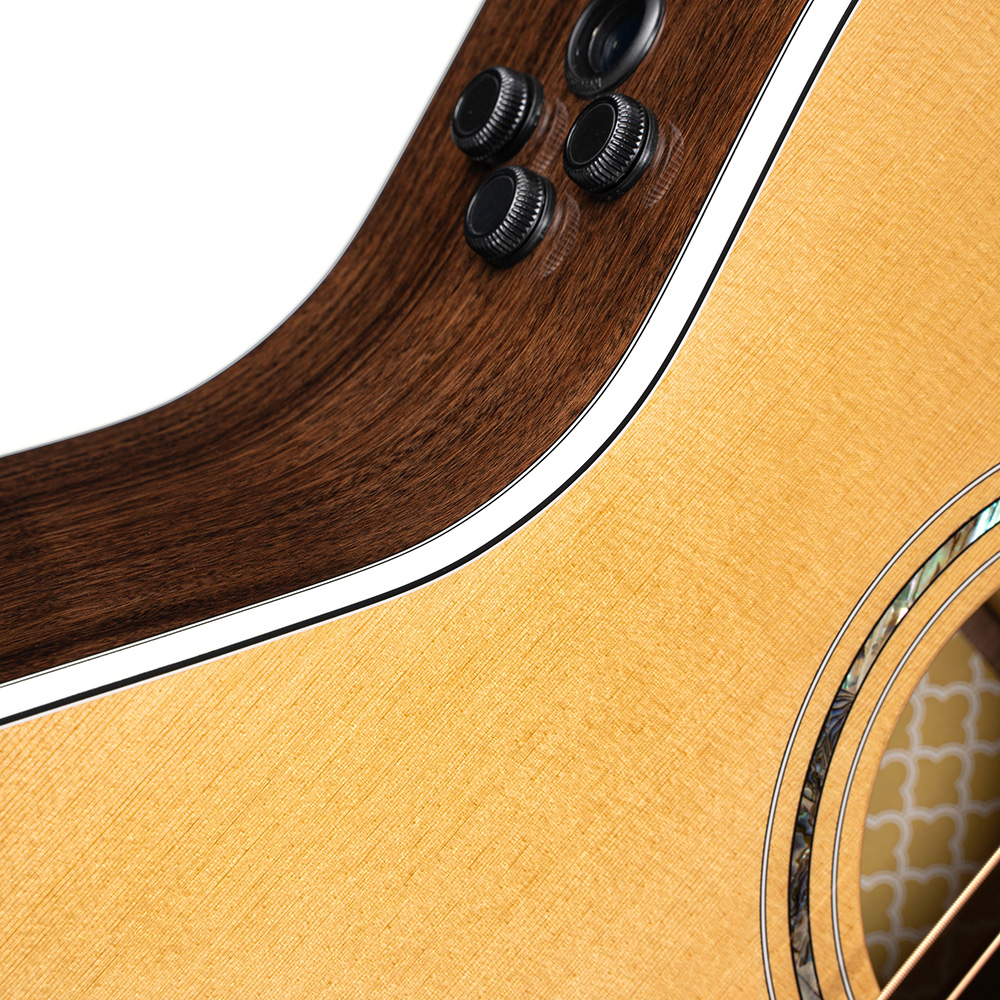 A Cort Gold széria nevével fémjelzett ATV (Aged To Vintage) eljárás lehetővé teszi, hogy a tömör Sitka fenyő tető jobban megérjen és a pórusai jobban kinyíljanak. Az ATV egy pörkölő eljárás, ami a Gold-A8-nak egy nagy, nyílt hangzást ad, ami természetes, mégis erőteljes és meleg középpel rendelkezik. Ezt erősítik a Pau Ferro hát- és oldallapok. A fokozott keménységű UV lakkozás megvédi a hangszert és hangminőségét, és most a fényes natúr mellett light burst színben is elérhető. A Fishman innovatív, szofisztikált tervezése, a Fishman Flex Blend System széleskörű hangszabályozást biztosít a beépített hangoló mellett.