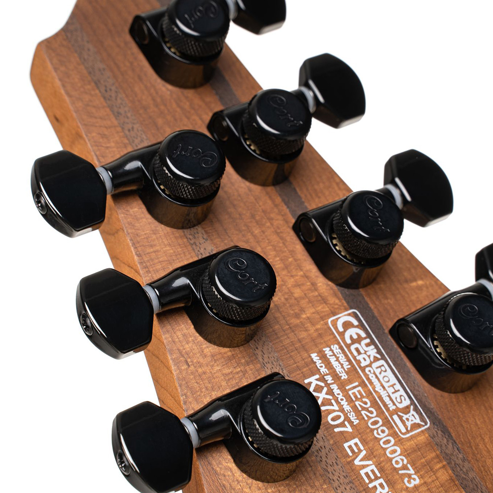 Cort KX707-Evertune-OPBK with bag elektromos gitár tokkal, Evertune, héthúros nyílt pórusú fekete