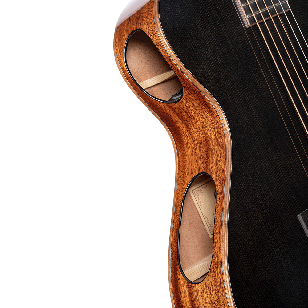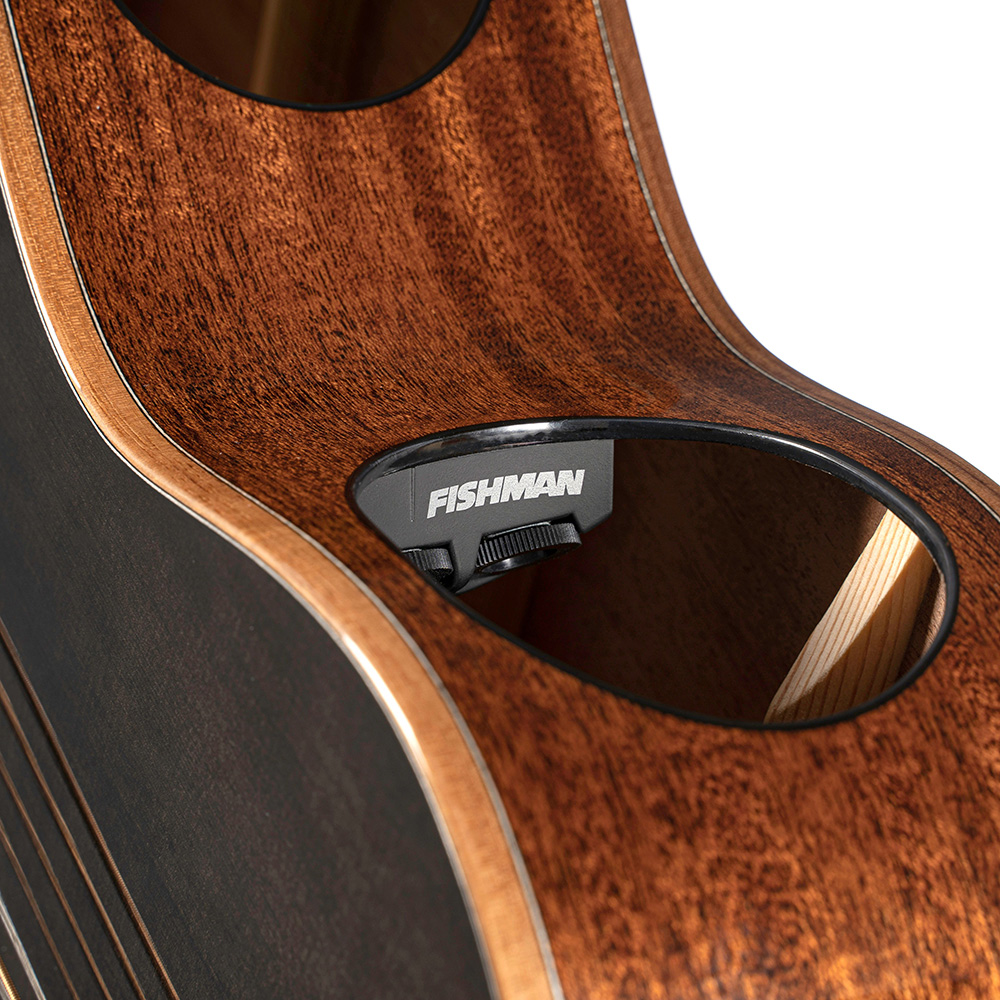A modern Jazz-korszak sikkes stílusa inspirálta a Modern Black akusztikus gitár egyedi és merész, mégis elegáns dizájnját. A hagyományos Grand Concert formát tervezték át a komplett stílushoz illeszkedő módosított ívekkel és oldalsó hanglyukakkal - így a nagyszerű rezonancia és hangminőség a zenész és a közönség számára egyaránt hallható. A Fishman® Matrix Infinity hangszedő/preamp rendszer tiszta hangzást biztosít.