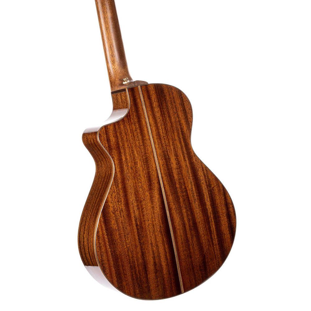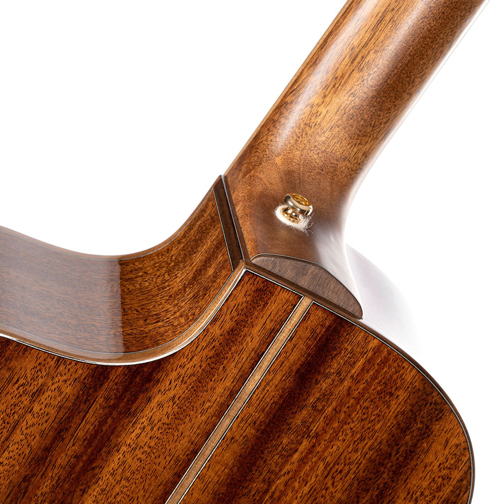 Konstrukció: dovetail nyakcsatlakozás, Grand Concert testforma, velencei cutaway, oldalsó hanglyuk, bevel kartámasz