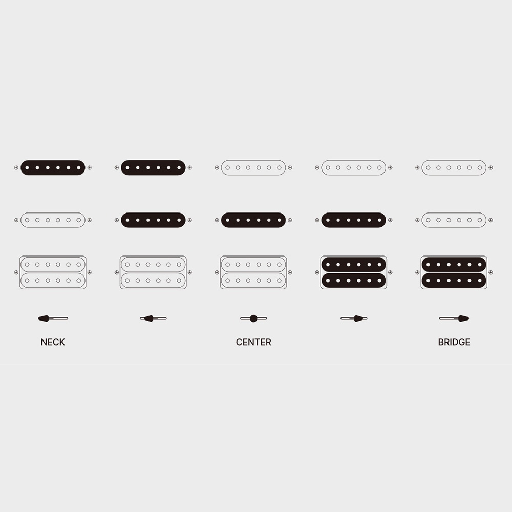 Az HSS pickup elrendezéssel és az 5-állású kapcsolóval a sima tiszta hangoktól a teljes gázzal játszott szólókig a hangok teljes spektrumát élvezheti. A Voiced Tone VTS63 & VTH77 szett minden pozícióban karaktert és tisztaságot biztosít.