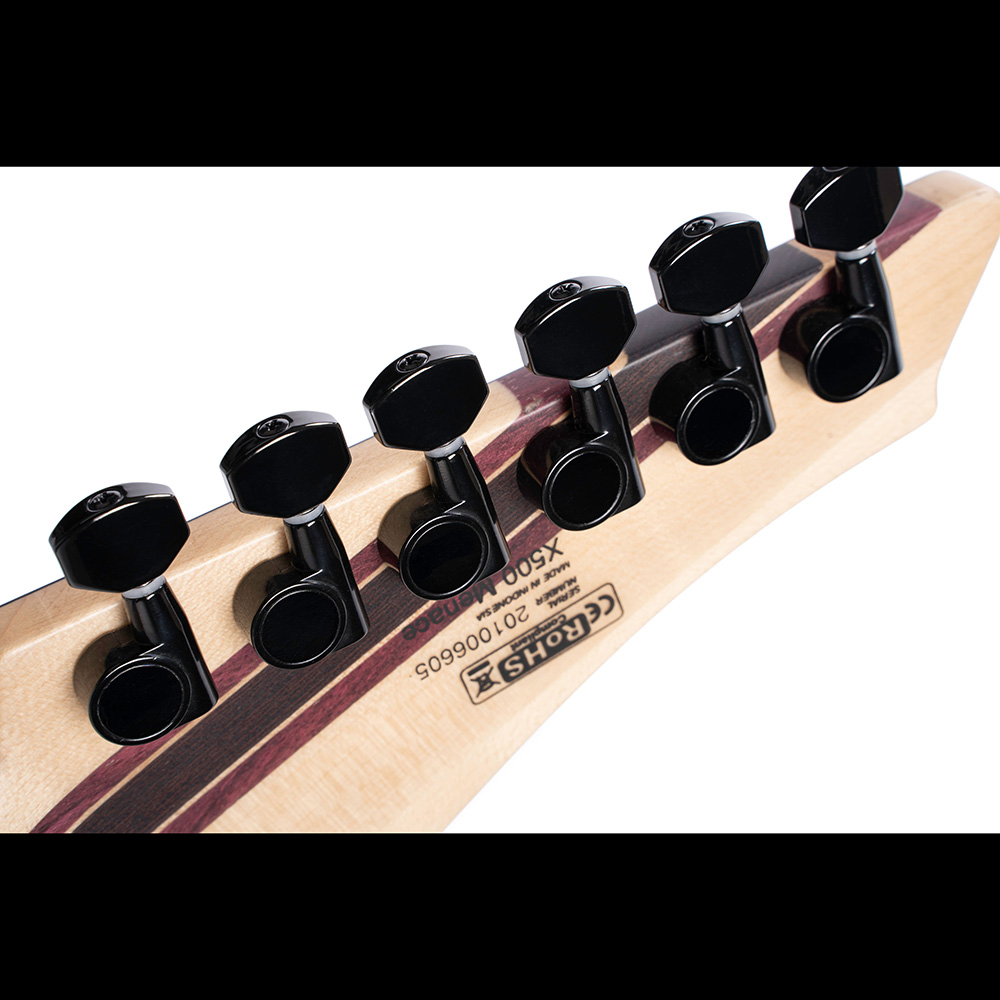 Az újjászületett X500 Menace egy igazi metálos gitár, mely átveszi a régi X500 helyét egy új, sötétebb és agresszívabb formával. A testen átmenő nyak kiváló hangkitartást biztosít, emellett a megújult X500 egy – mostanában ismét egyre népszerűbb – juhar fedlap/mahagóni test kombinációt alkalmaz. A fordított fej, a 7-részes juhar/amaranth/panga-panga nyak és változó rádiusszal rendelkező fogólap, FloydRose® Original tremolo, Seymour Duncan® Sentient & Nazgul Humbucker hangszedő szett és a sötét kinézet teheti a 2021-es év egyik kiemelkedő metál gitárjává.