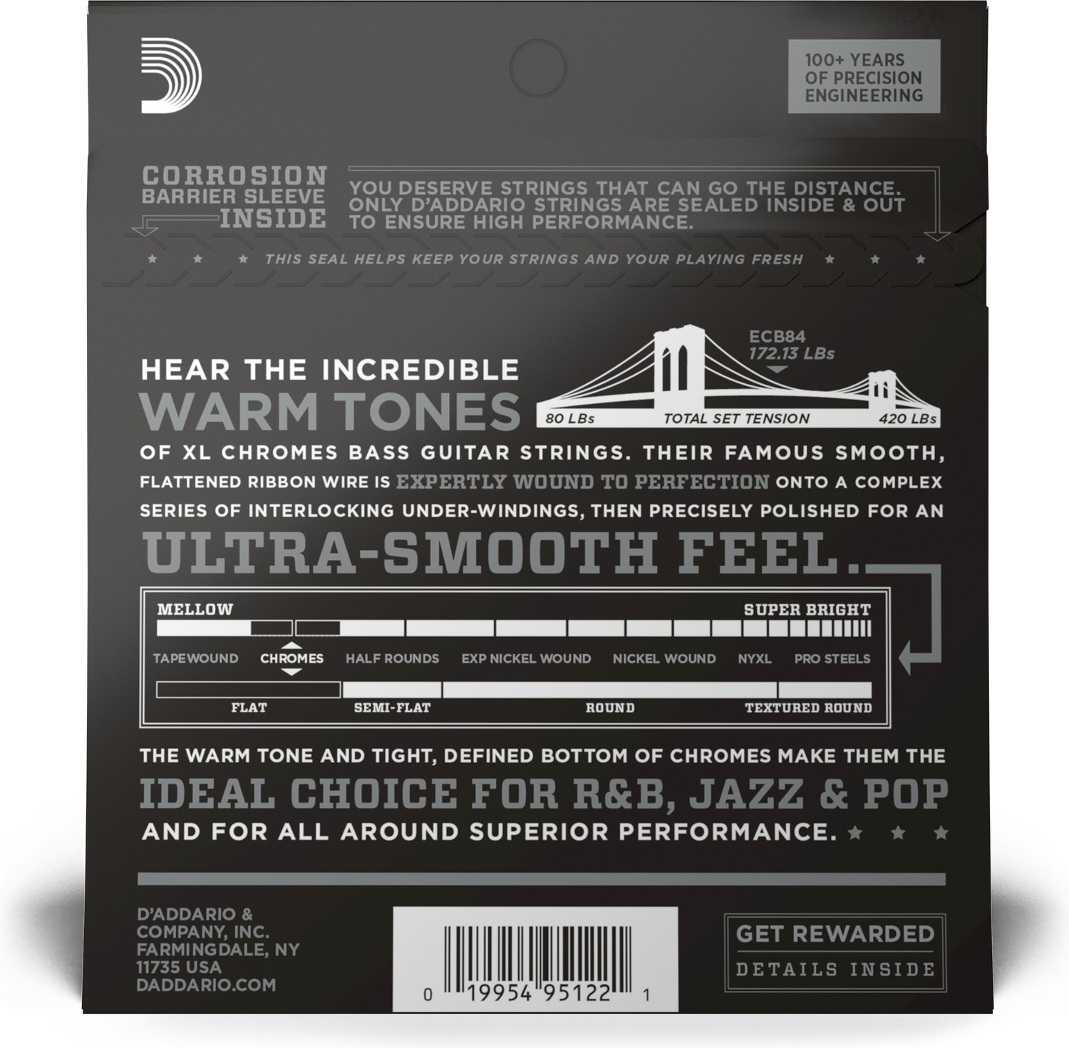 D'Addario ECB84 Chromes basszus gitárhúr, Custom Light 40-100