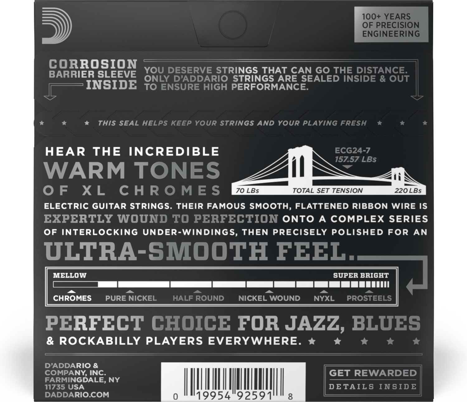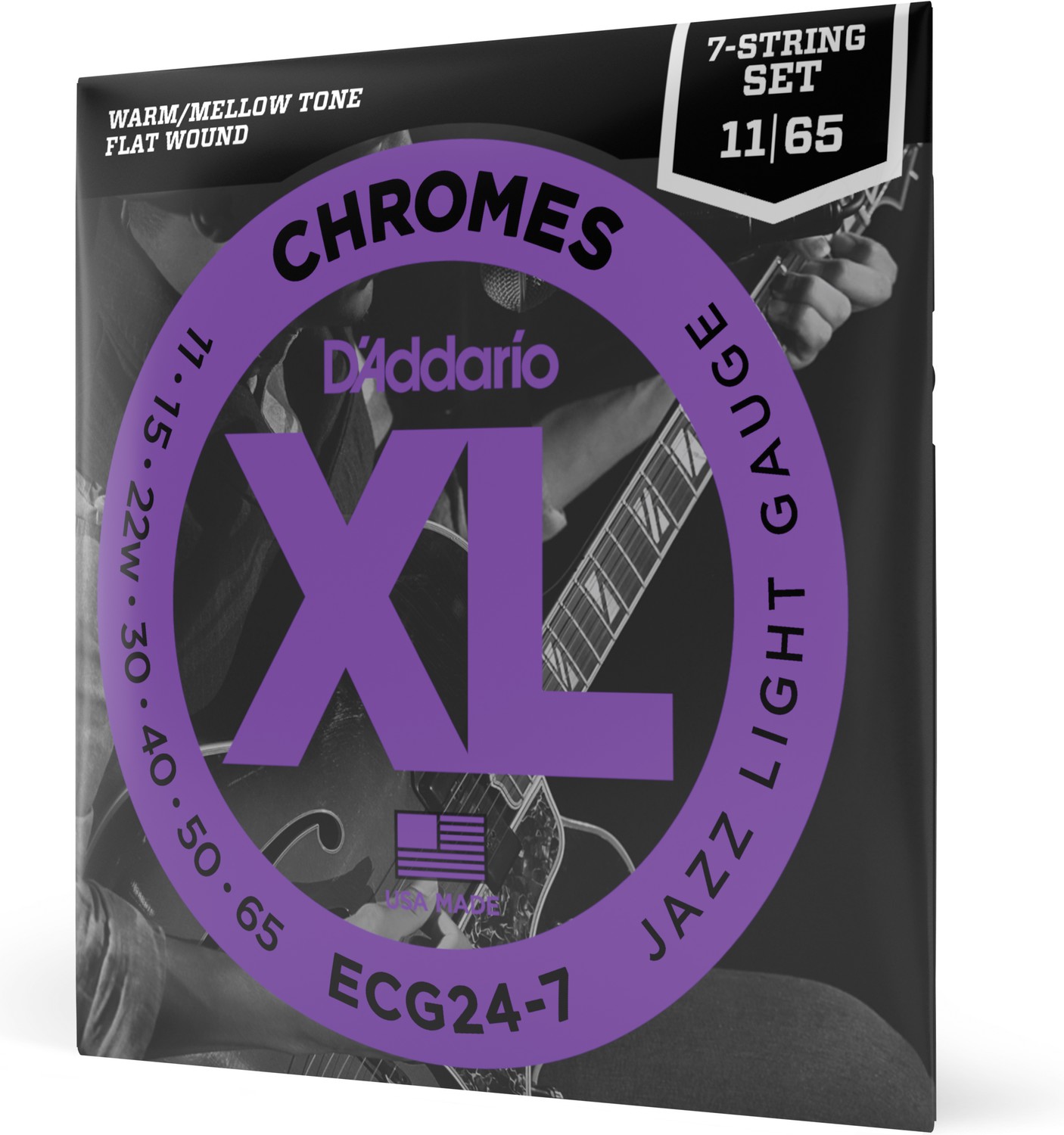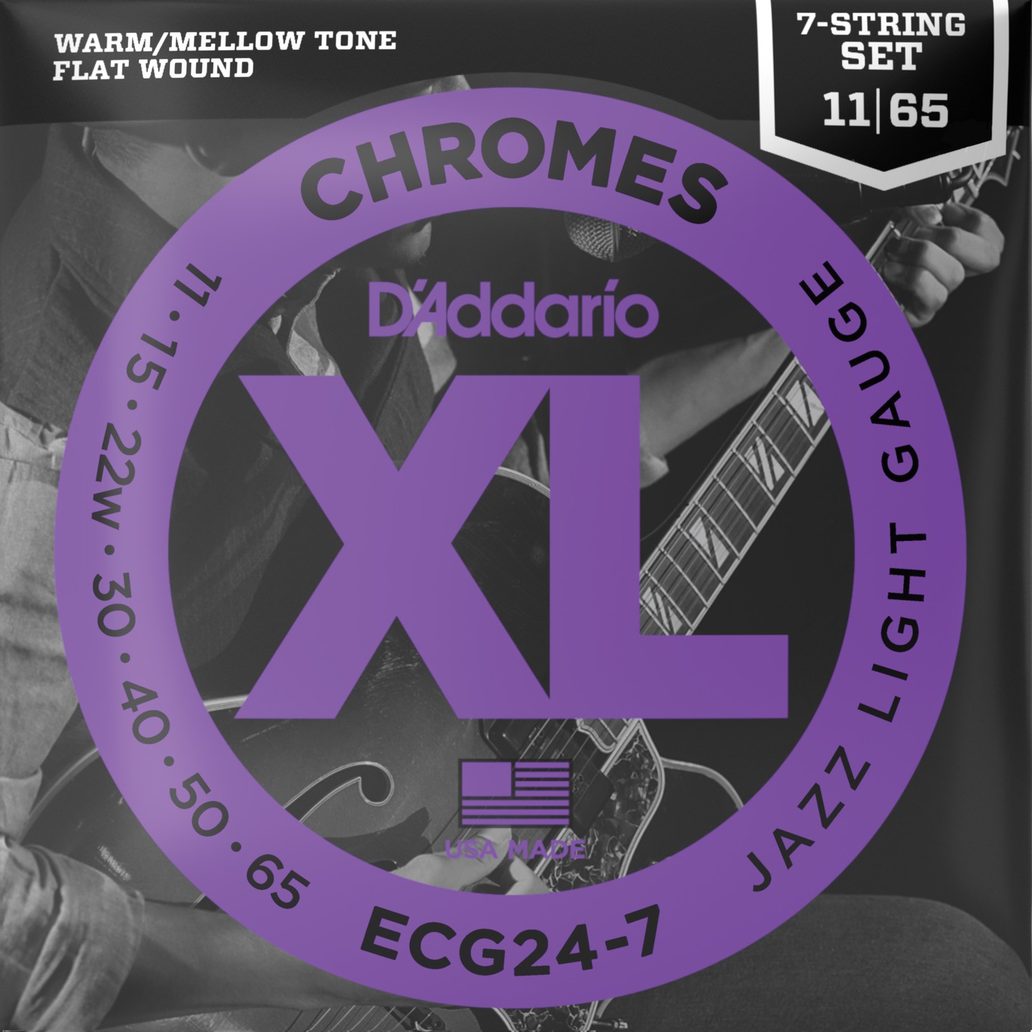 D'Addario ECG24-7 Chromes Flat Wound 7 húros elektromos gitárhúr, Jazz Light 11-65