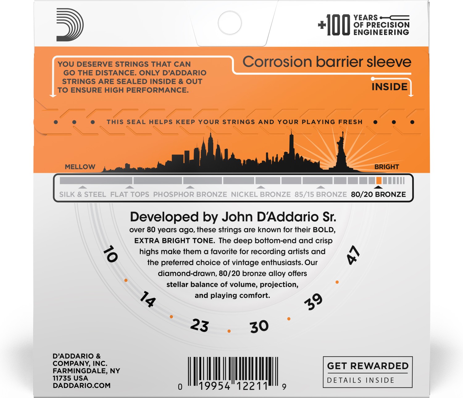 D'Addario EJ10 80/20 bronz akusztikus gitárhúr, Extra Light 10-47