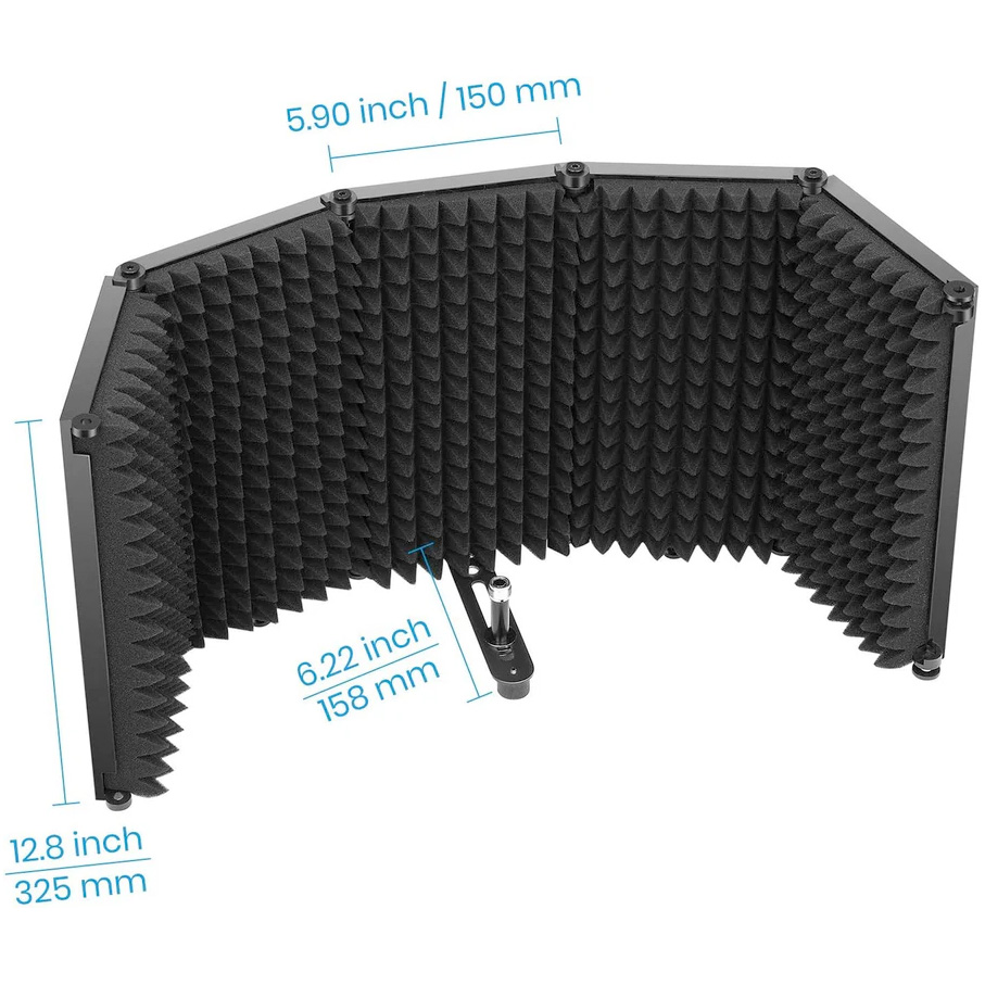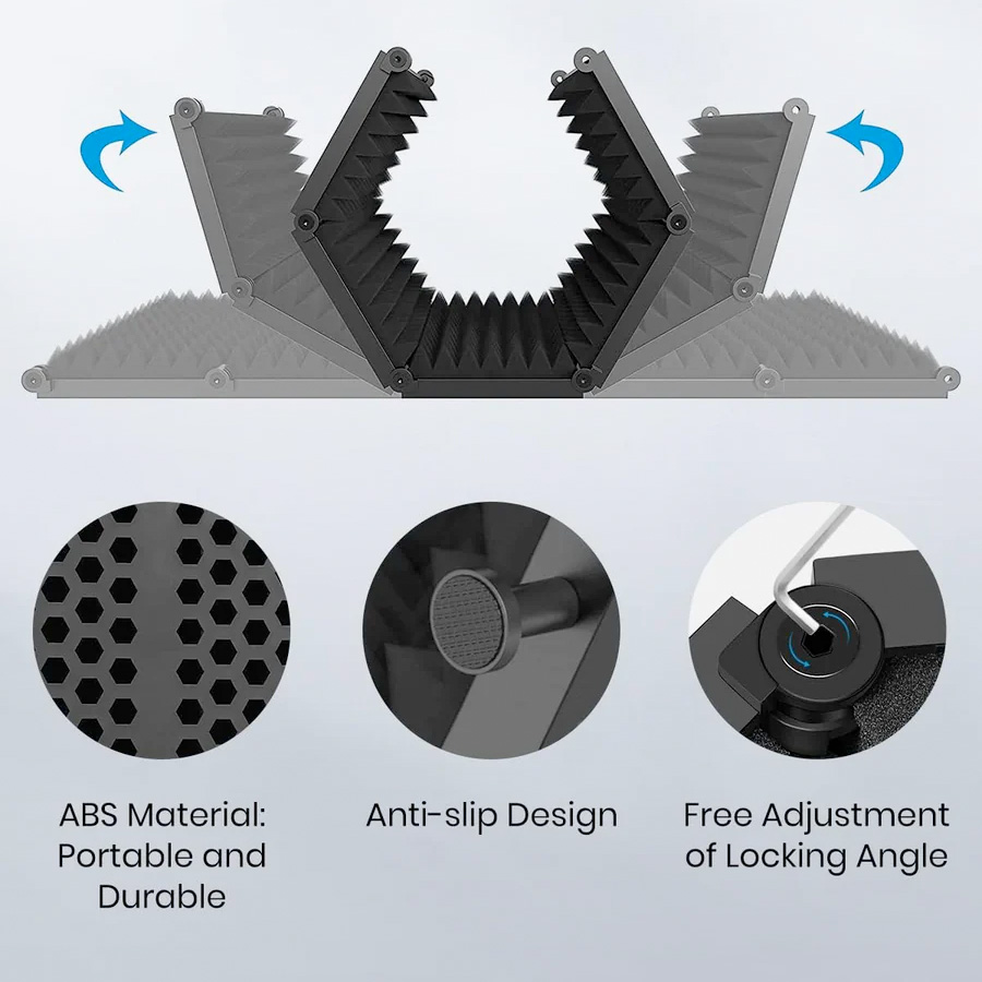 Összehajtható és állítható: 5 panelből áll, így rugalmasan tárolható és szállítható. Egyszerűen össze- és széthajtható, így optimális hangszigetelést biztosít a legmagasabb minőségű hangfelvételek érdekében.