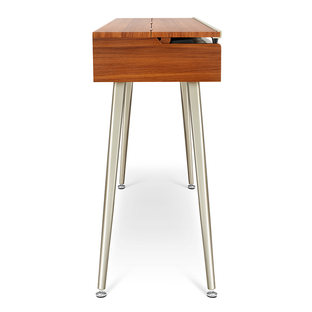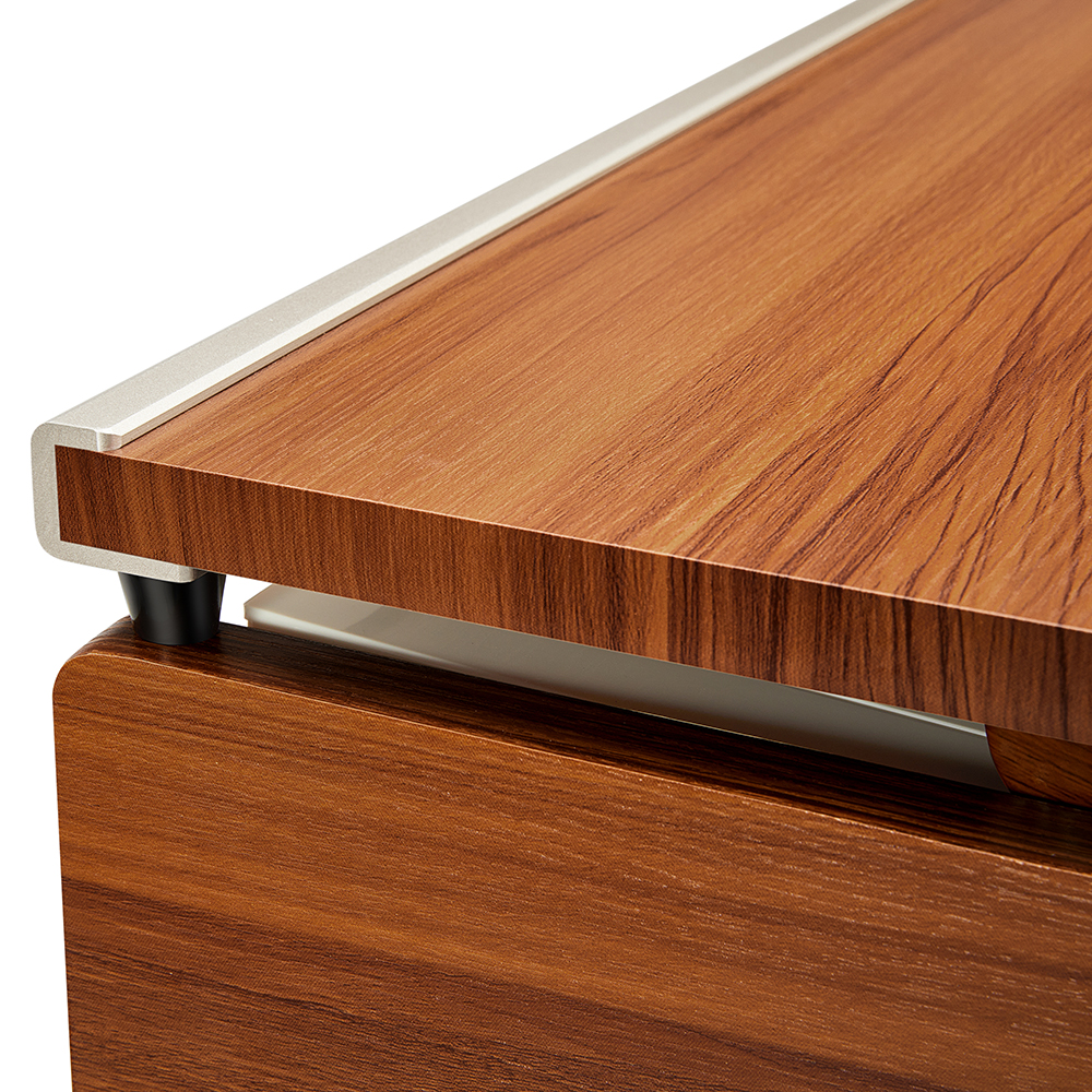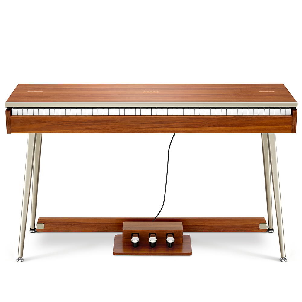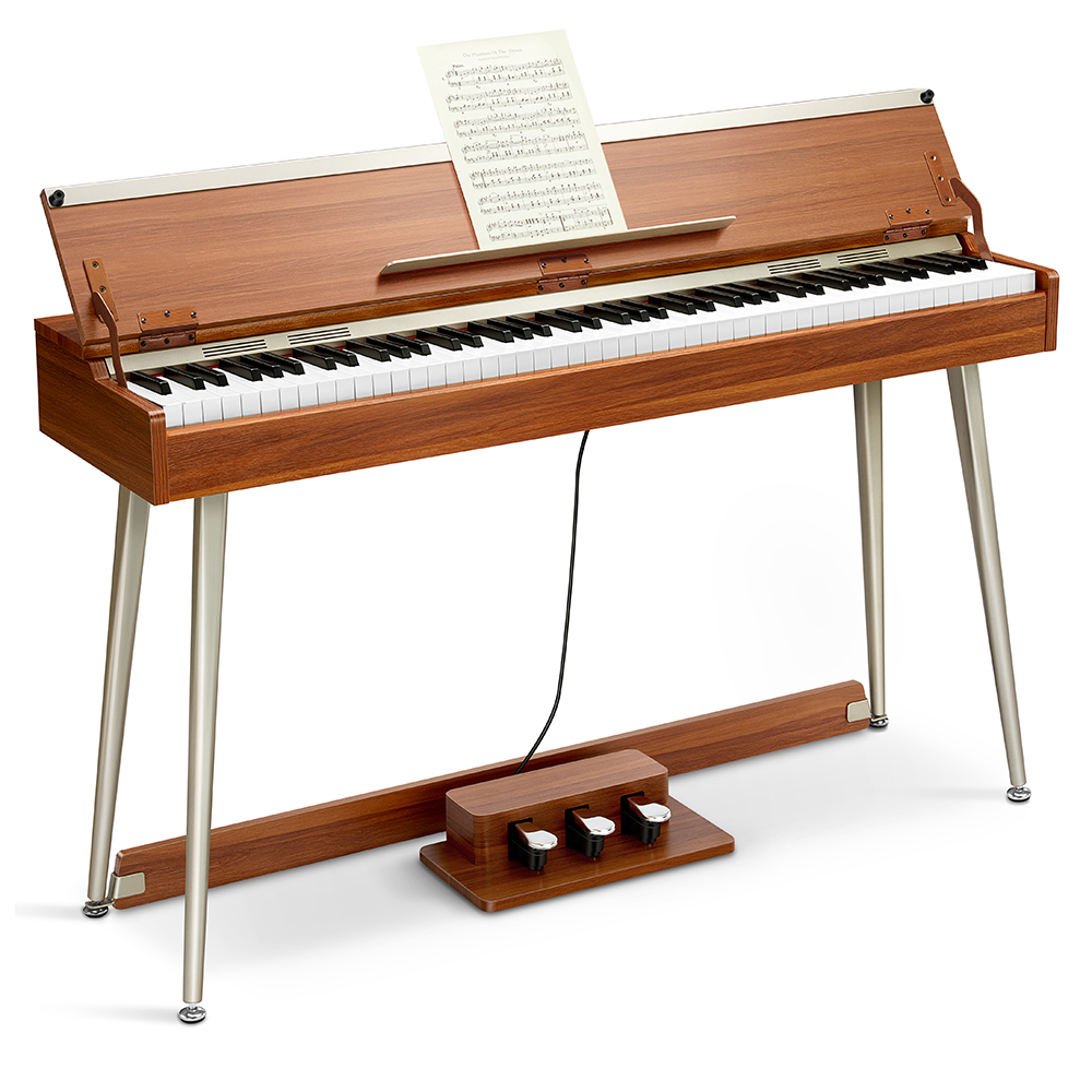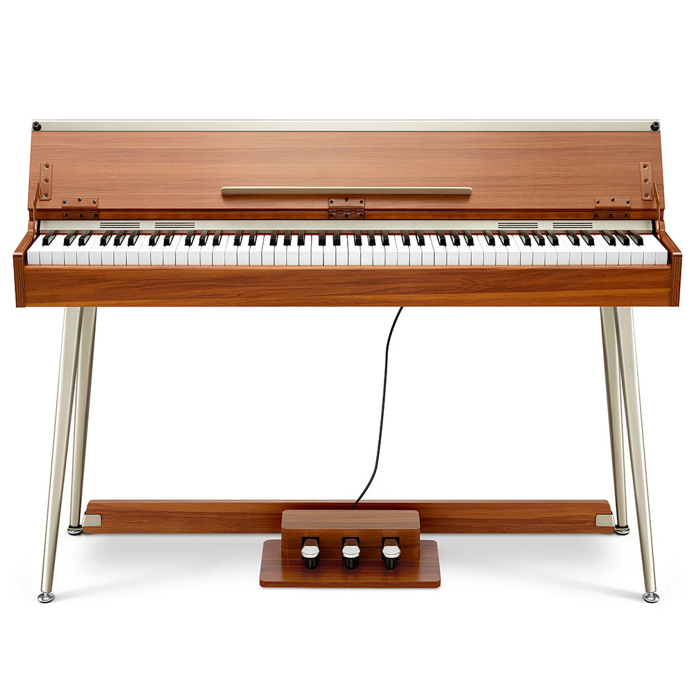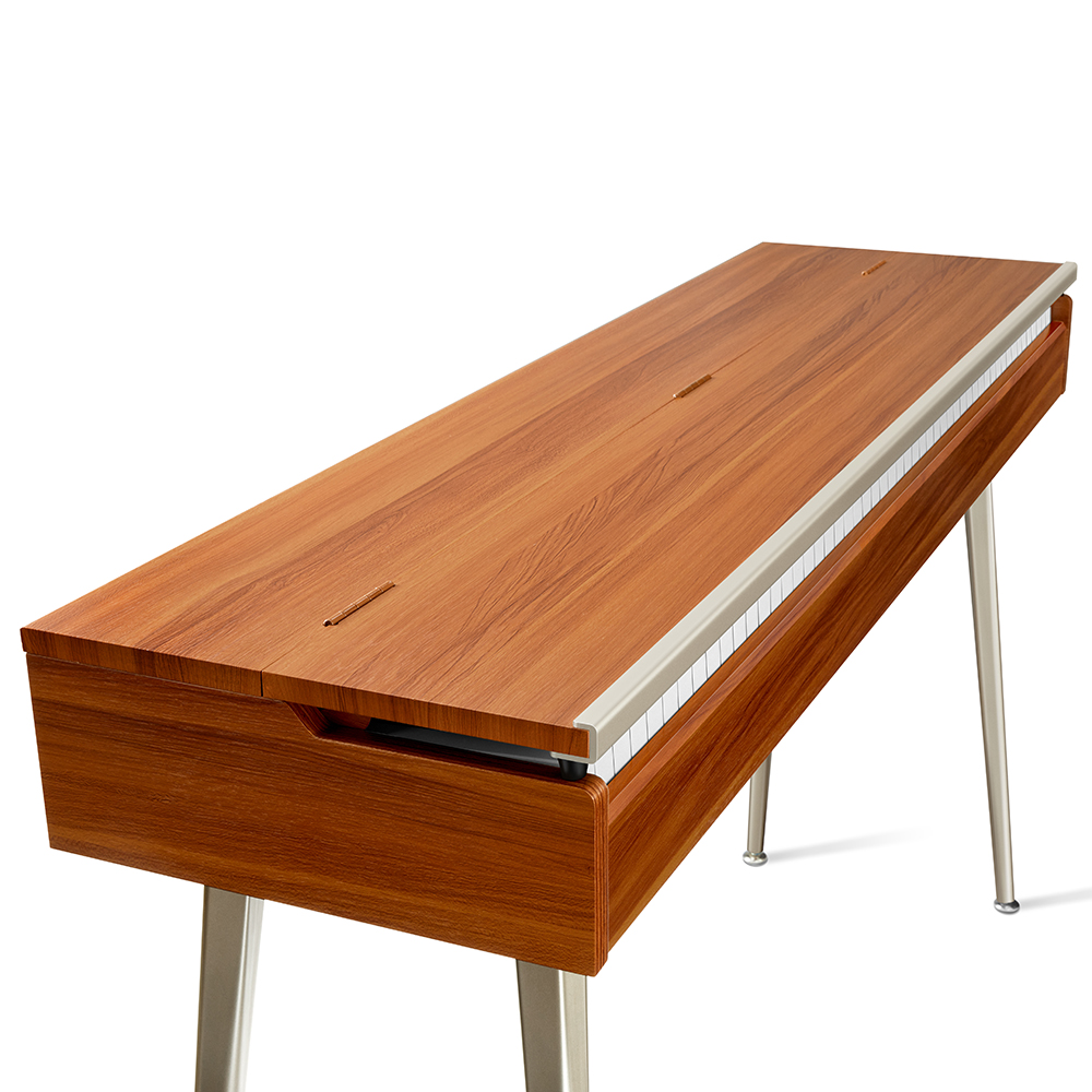 - Természetes faerezetes dizájn és fém szegélyvonalak, amit egy félig nyitott zongora fedlap egészít ki.