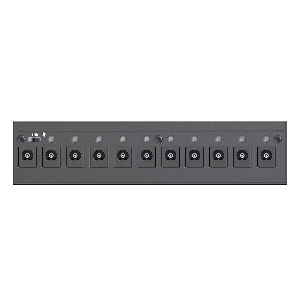 Rövidzárlat elleni védelem: Az egység mind a 10 kimenete külön rövidzárlatvédelemmel rendelkezik, azaz az egyik csatorna rövidzárlata nem befolyásolja a többi csatorna működését. Abban az esetben, ha az összes LED lámpa világít, a rövidzárlatos csatorna LED fénye kikapcsol, míg a többi normál csatorna fényei továbbra is világítanak. Ez segít a hibák felkutatásában, ha több effektor között rövidzárlat volt.