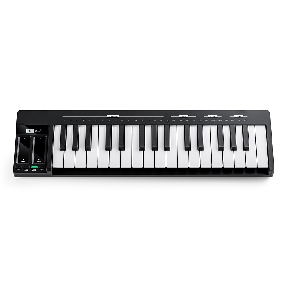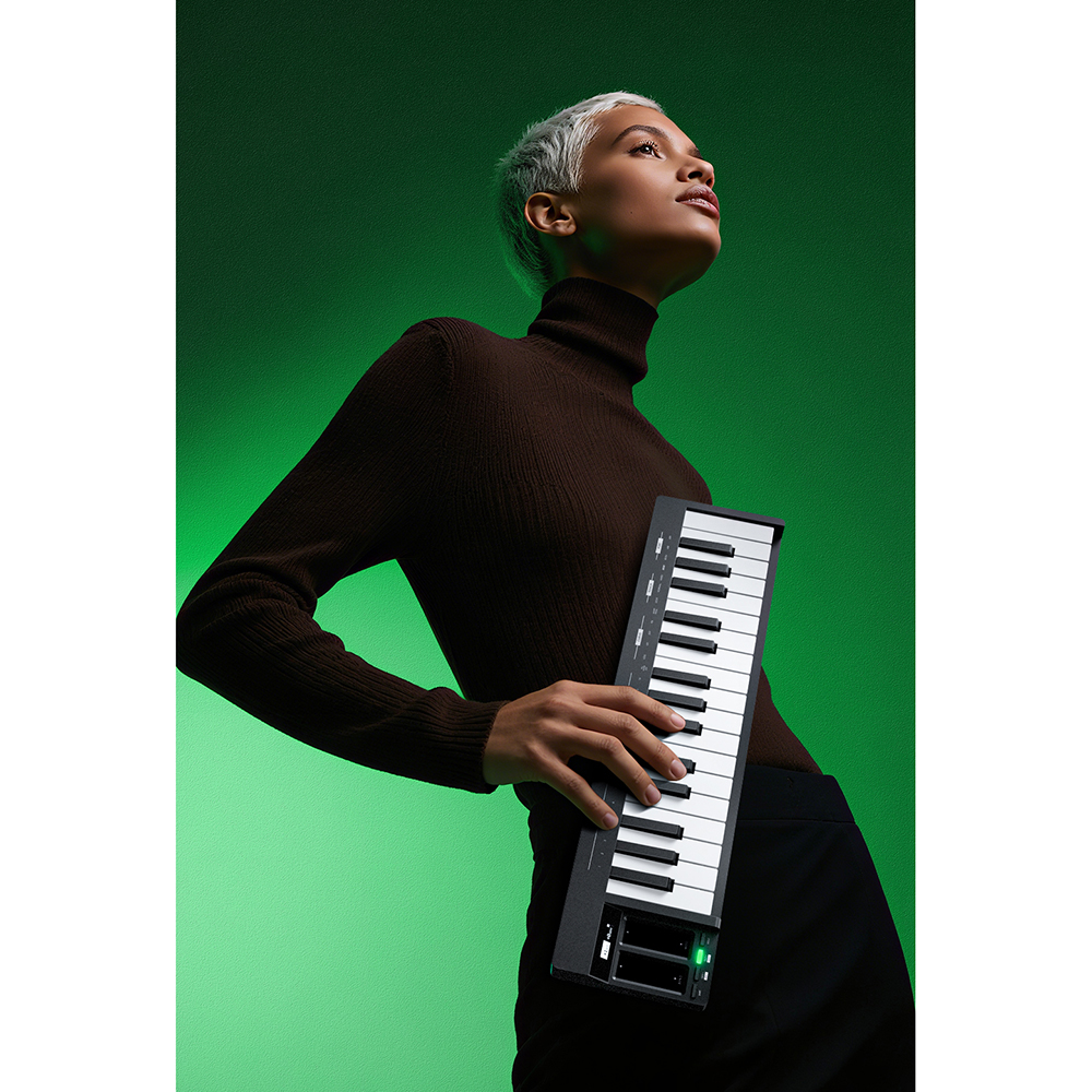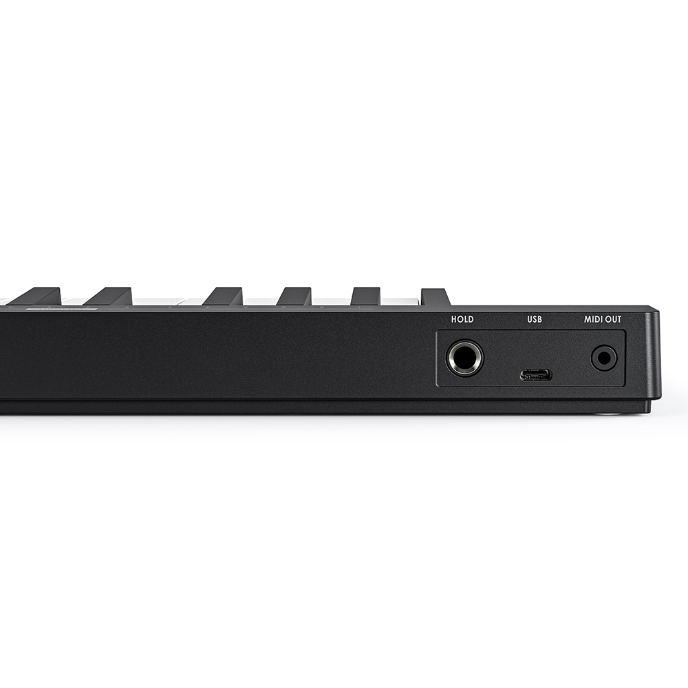 - Vezérlők: Pitch Bend (érintőcsík LED jelzővel), Mod Wheel (érintőcsík LED jelzővel), Shift gomb, Oktáv transzponálás (OCT- & OCT+): -3 oktávtól +2 oktávig, Félhang transzponálás (SEMI- & SEMI+): ±11 félhang, Hold gomb