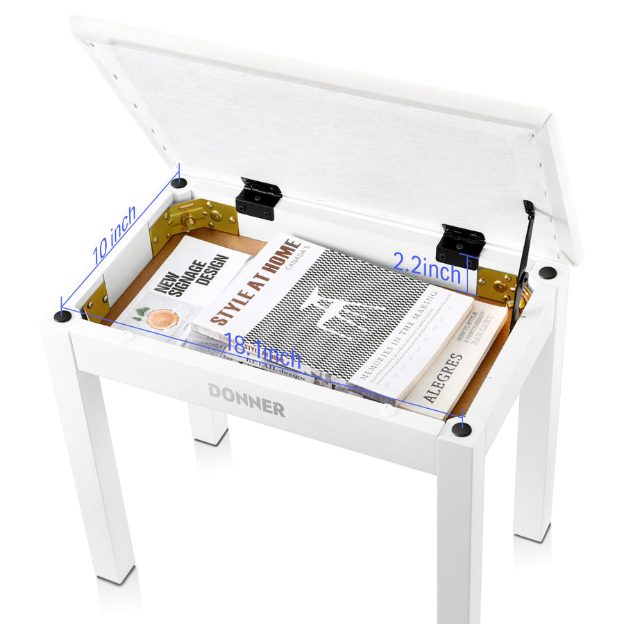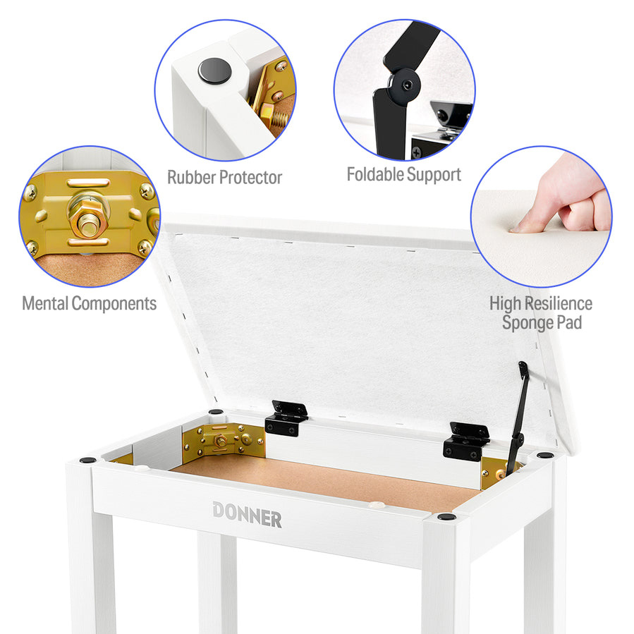 Donner PianoBench-DKB-10-WH zongoraszék tárolóval, fehér