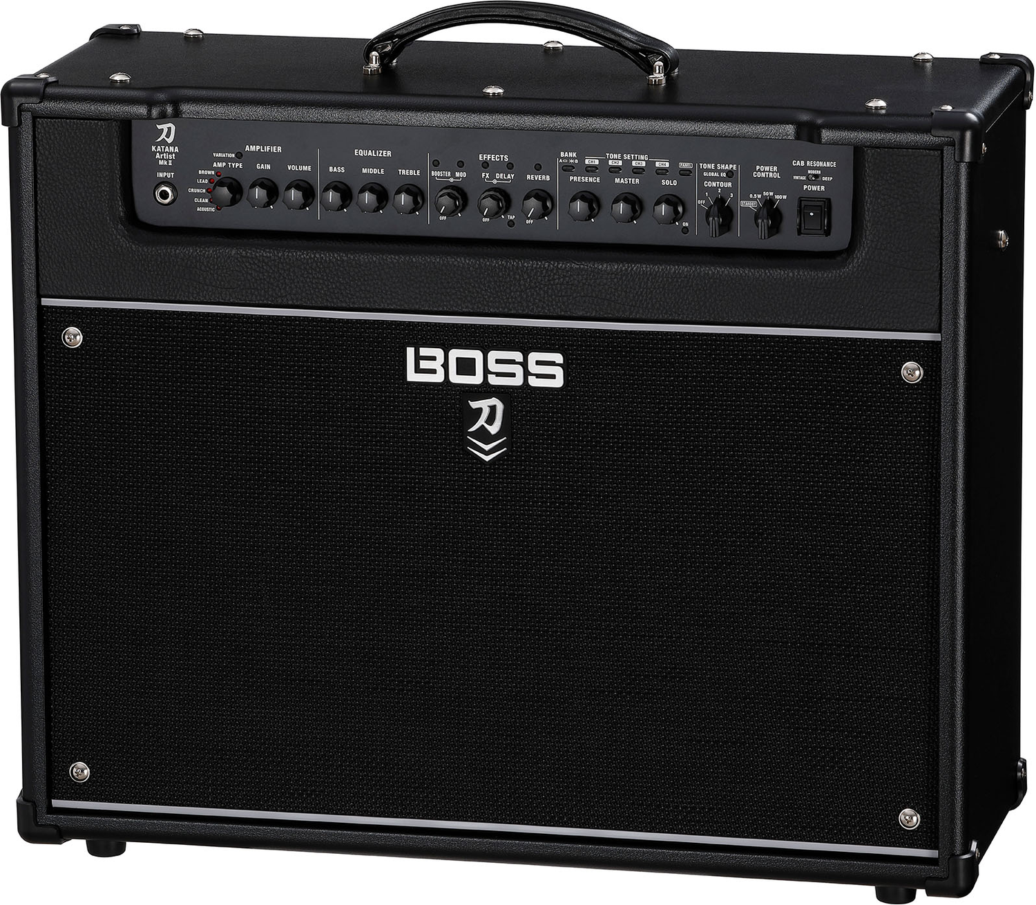 A Katana-Artist MkII új generációs funkciókkal és rugalmassággal még feljebb emeli a Katana sorozat prémium modelljét. Mind az öt erősítőkarakterhez új hangzásvariációk tartoznak, melyek megduplázzák a hangszínválasztékot, továbbá három helyett öt beépített effektkategória érhető el. Az előlap exkluzív szabályzóival még több lehetőség adódik a hang megformálásához, beleértve egy háromállású Contour kapcsolót, Global EQ-t három egyénileg meghatározható burkológörbével és egy Solo Boost funkciót, beállítható jelszinttel. Az új Dual Amp funkcióval pedig egyszerűen kapcsolható össze két Katana-Artist MkII a még erőteljesebb és kiterjedtebb hangzás eléréséhez.