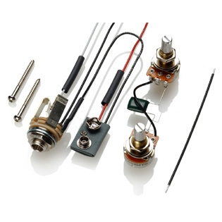 Tartozékok: EMG Quik-Connect kábel, csavarok és rugók, hangerő és hangszín potméter, 9V-os elem és jackdugó aljzat
