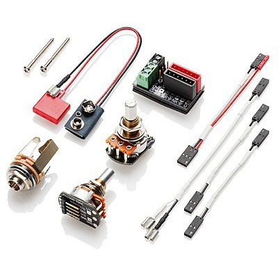 Tartozékok: EMG Quik-Connect kábel, csavarok és rugók, hangerő és hangszín potméter, 9V-os elem és jackdugó aljzat