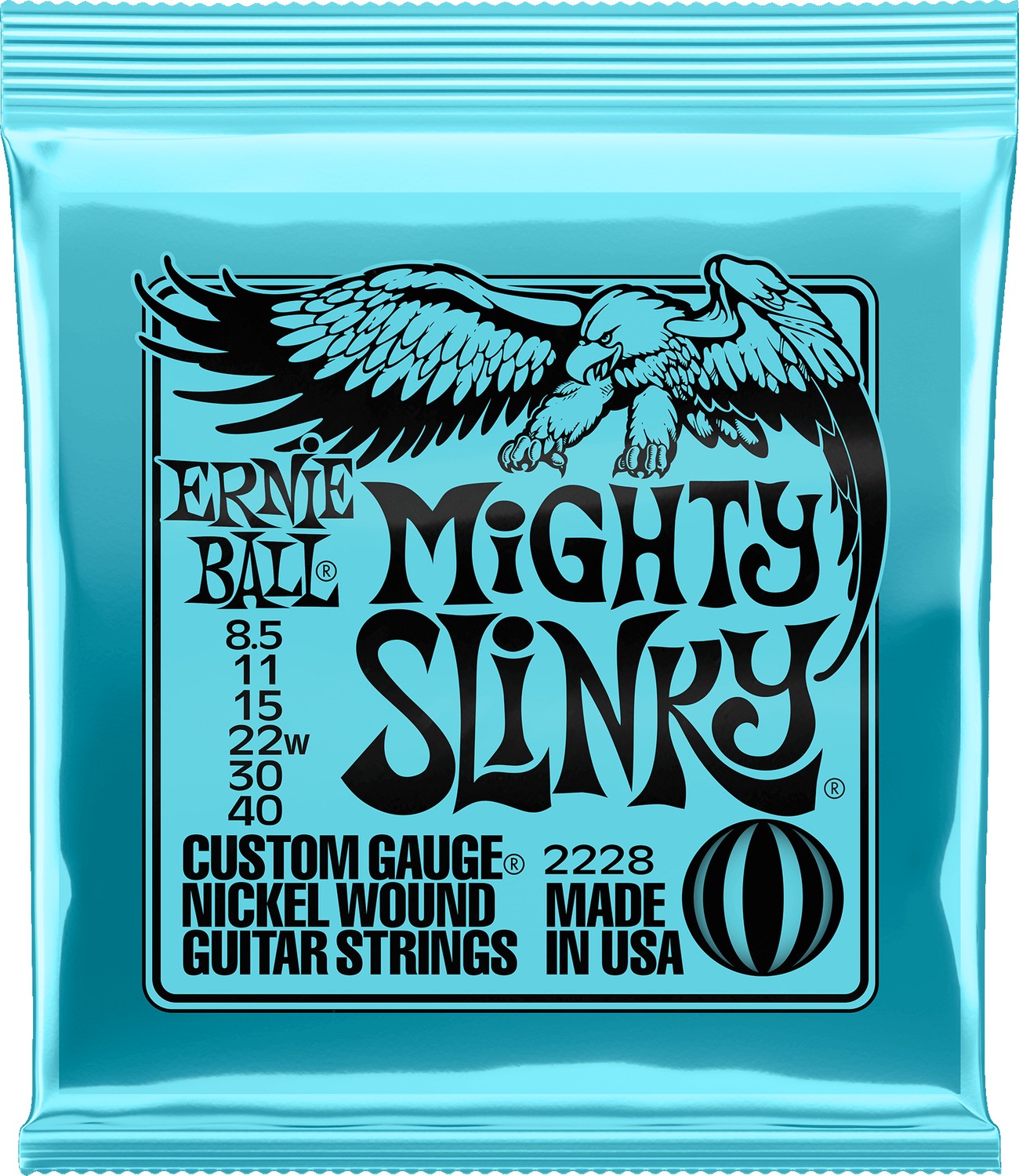 Az Ernie Ball Mighty Slinky húrok az Extra Slinky és Super Slinky húrok között képeznek egy lépcsőt, ezzel biztosítva a könnyű, gyors játékérzést egyenletesen mind a hat húron.