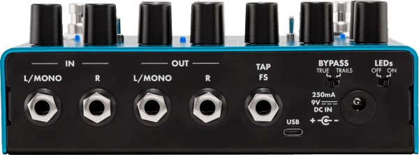 - Kapcsolók: Reverb, Tap, Delay, Type