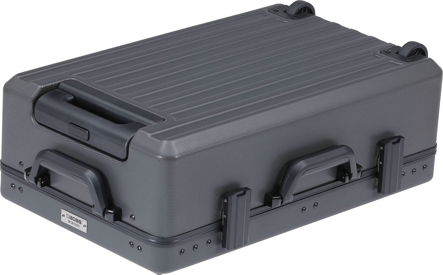 A BCB-1000 egy innovatív, új megközelítést képvisel a pedalboard-ok világában és minden eddiginél könnyebbé teszi felszerelésed szállítását. A tartós, bőrönd stílusú kialakítás nagy teherbírású védelmet nyújt, a kihúzható fogantyú és beépített kerekek pedig megkönnyítik a szállítást a koncerthelyszínek között. A fedél levételét követően egy megdöntött alumínium rögzítőfelület látható, amely két sor pedál elhelyezését teszi lehetővé, és alatta bőséges hely áll rendelkezésre a kábelek elvezetéséhez és a tápellátáshoz. A beépített csatlakozódoboz segítségével pedig villámgyorsan csatlakoztathatod és máris kezdődhet a játék.