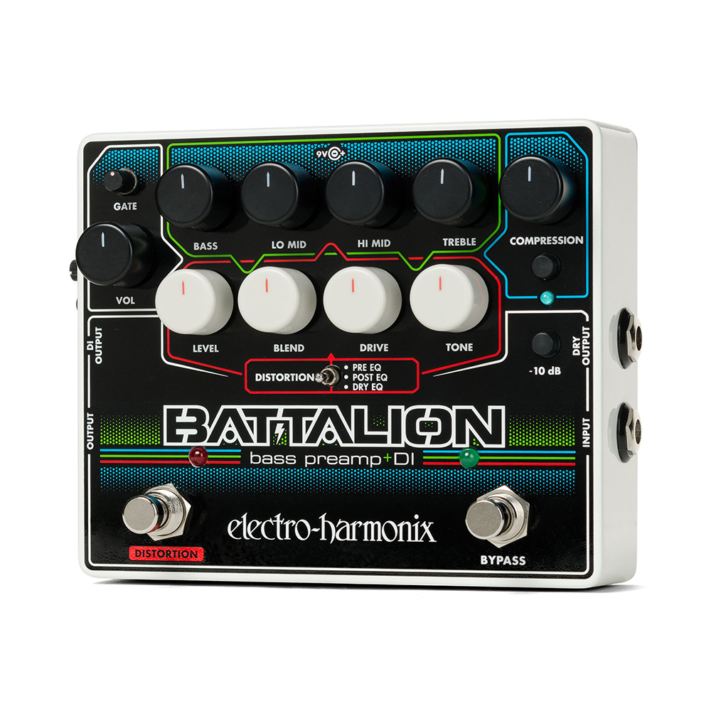 A Battalion Bass Preamp és DI egy kompakt, rugalmas pedál egy strapabíró, pedálboard-barát házban, nagyszerű hangformáló adottságokkal rendelkezik. A Battalion tele van olyan tulajdonságokkal, amik a tudatos basszusgitárosok számára vonzóak lesznek: négysávos EQ, háromutas MOSFET distortion, kompresszor, zajzár és széleskörű ki- és bemenetek.
