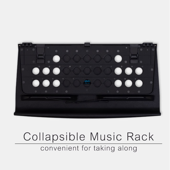 - Osztott felépítés, összecsukható kottatartó - kényelmesen hordozható