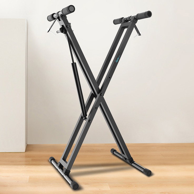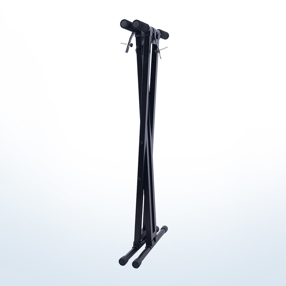 GKS-02 Billentyű állvány: fém dupla X konstrukció, hegesztett konzolokkal, strapabíró és stabil. Elektromos billentyű, elektromos zongora, MIDI szintetizátor stb. számára alkalmas. A gázrugóval könnyedén nyitható-csukható. A csúszásmentes talpakkal bármilyen talajon stabilan megáll. 4,9 kg tömegű, akár 80 kg teherbírással.