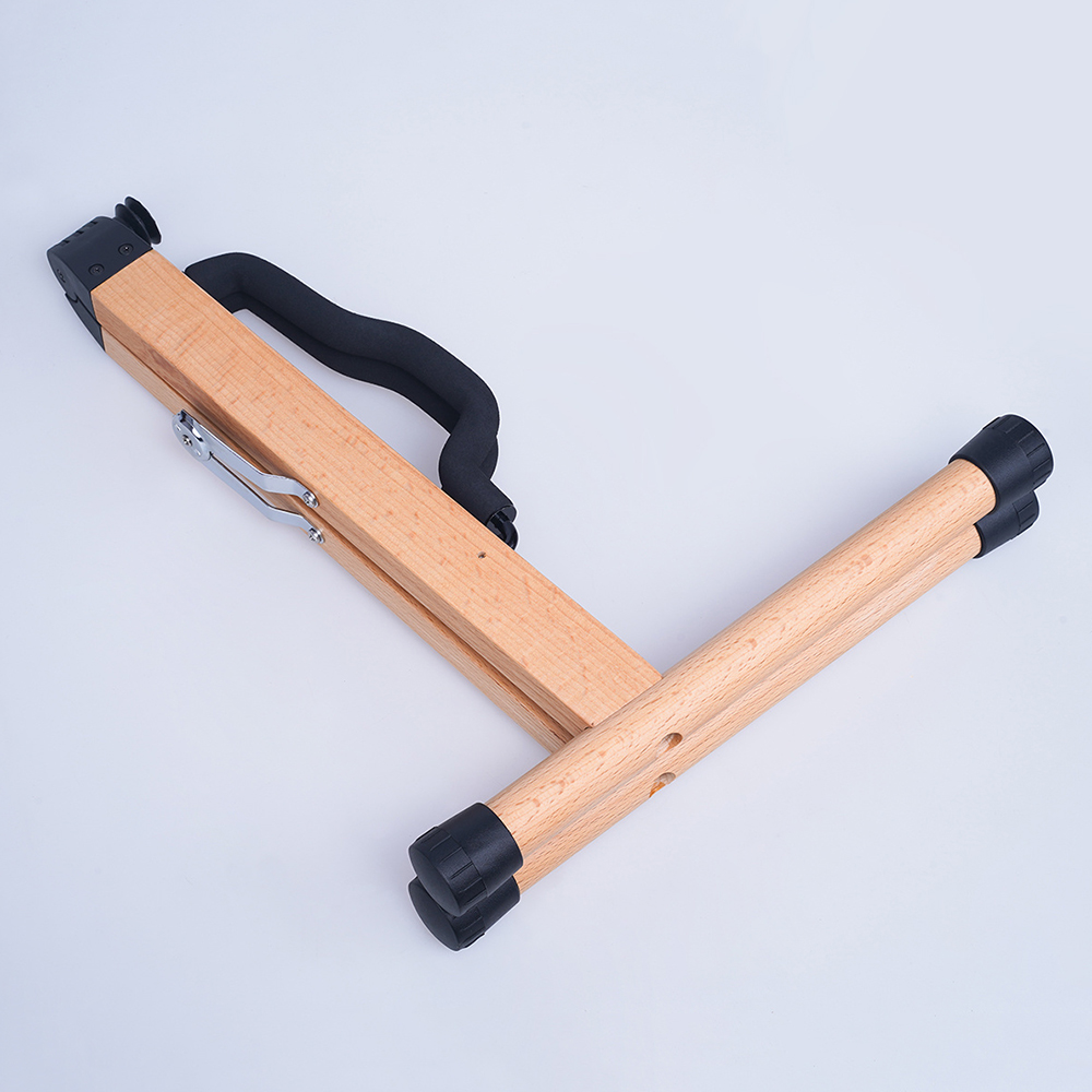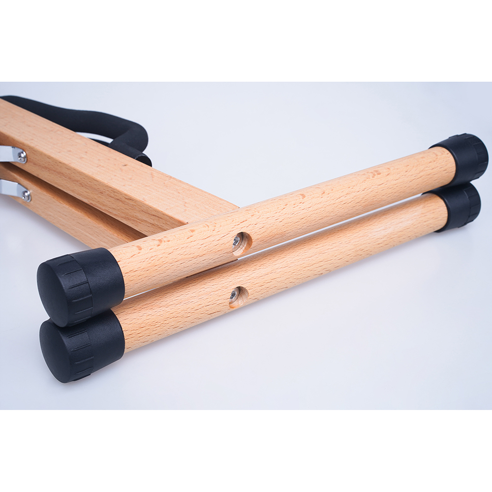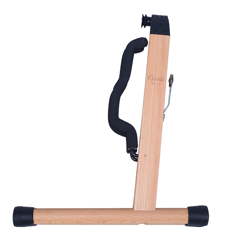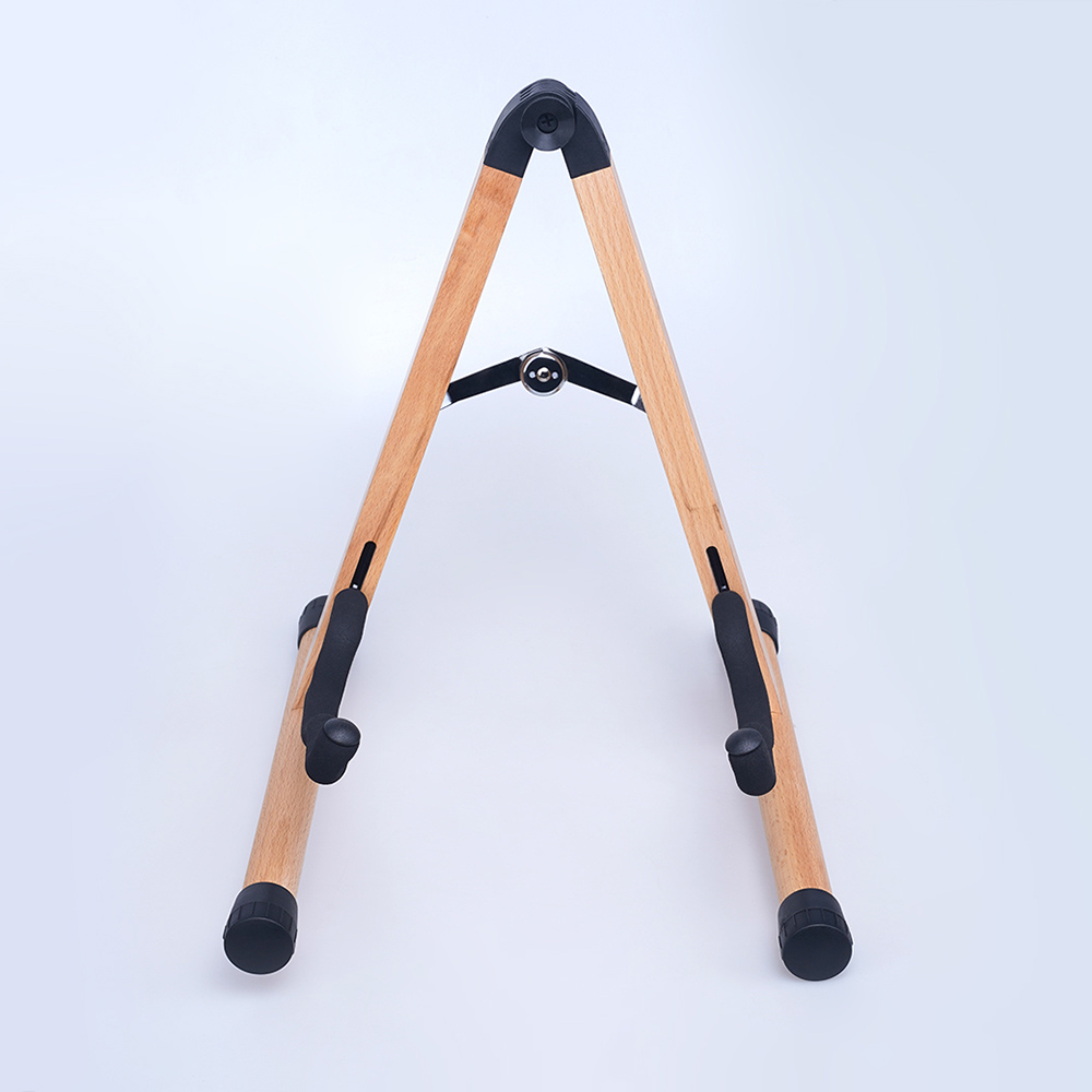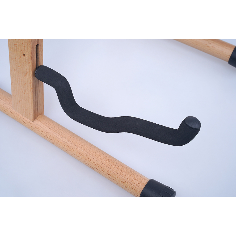Fából készült, elegáns, praktikus, összecsukható A-gitárállvány újragondolva. A tapadókorong és a gumiborítású állítható tartókarok biztonságosan tartják a hangszert.