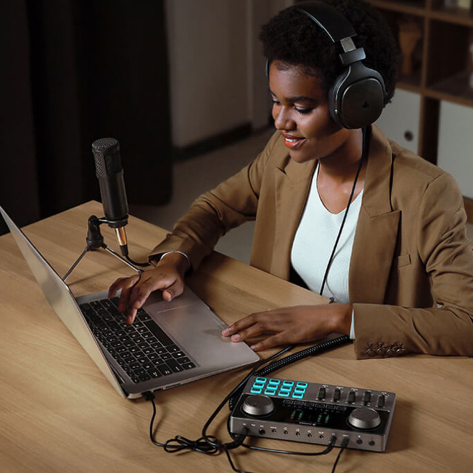 - A munkaállomás, mikrofon, állvány és több kábel a csomag része, így azonnal elkezdheted saját podcastodat ezzel a szettel