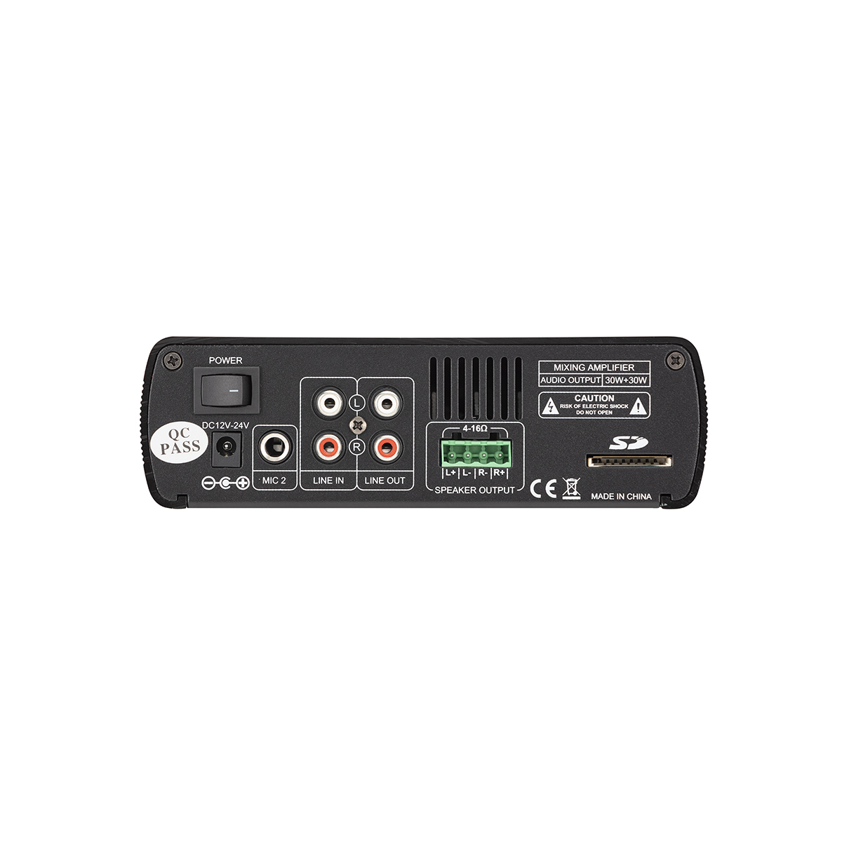 - 1 AUX és 1 MIC bement, 1 AUX kimenet teljesítménybővítéshez