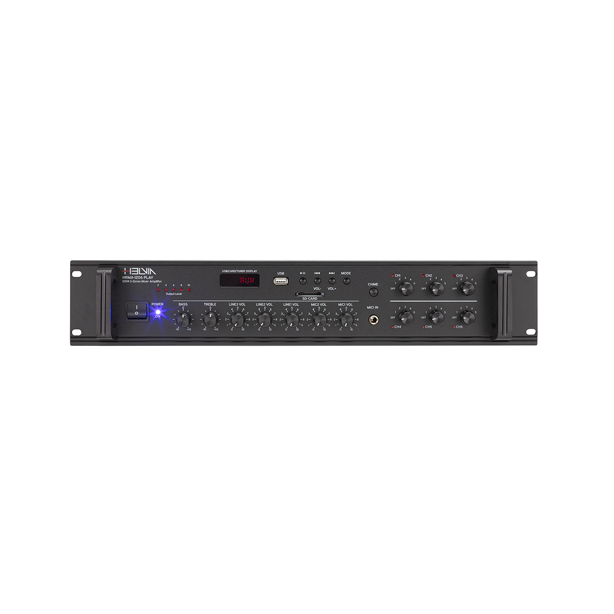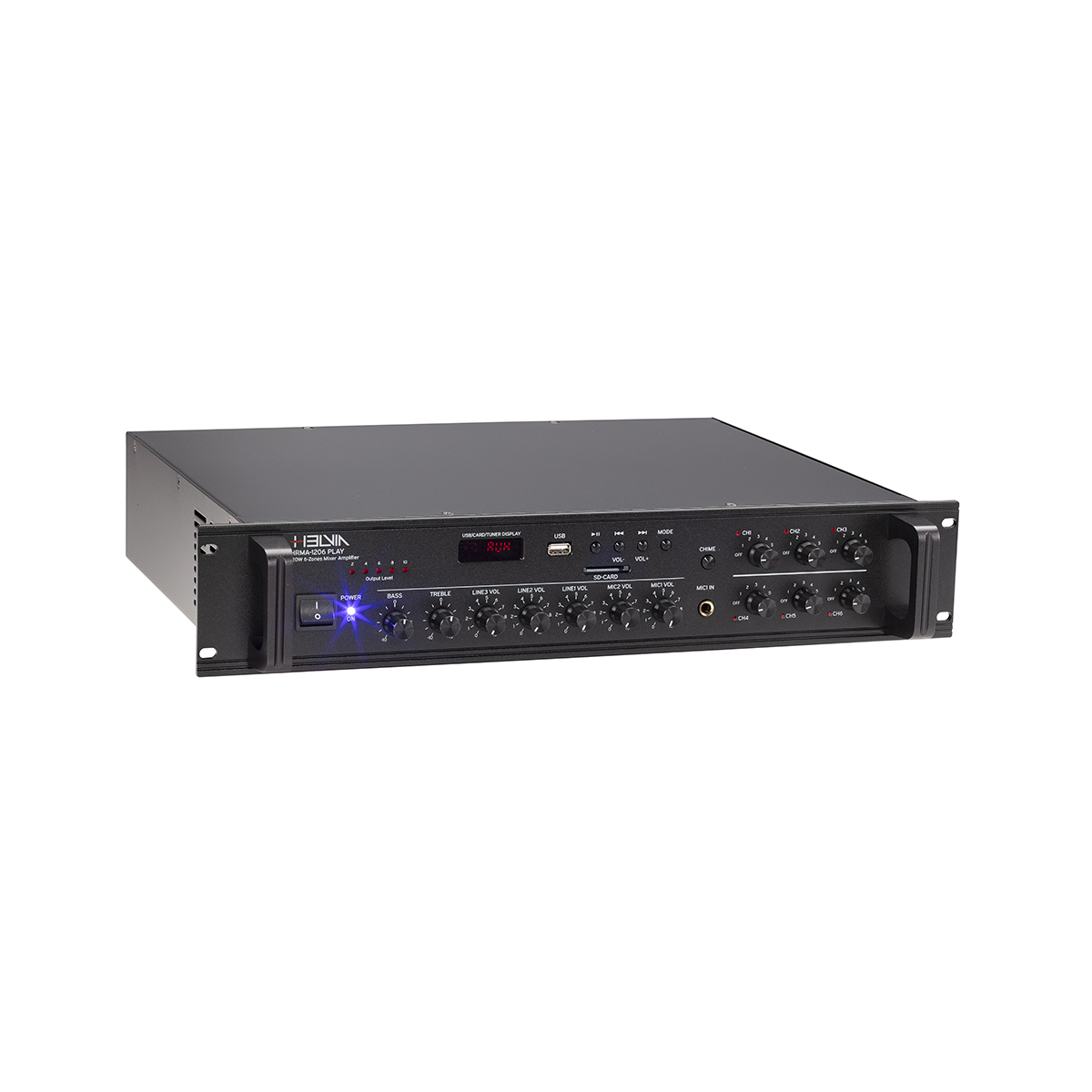 HELVIA HRMA-1206 PLAY - 120W 6-zónás integrált keverőerősítő, USB/SD/FM funkcióval és zónánként független vezérléssel