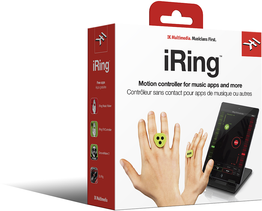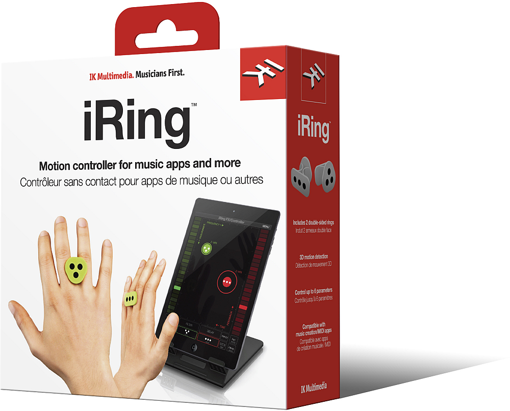 Az iRing-nek köszönhetően érintés nélkül tudod irányítani a zenei alkalmazásaidat és effekt-szerkesztőidet iPhone-ra, iPad-re és iPod touch-ra. A "gyűrűvel" kézi gesztusokkal adhatod meg az effektek paramétereit, vagy módosíthatsz beállításokat, úgy, hogy csak a kezedet mozgatod a képernyő előtt.