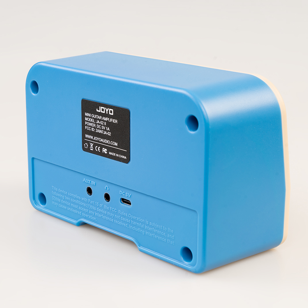 Újratölthető akkumulátor: A Joyo mini gitárerősítő beépített újratölthető akkumulátorral rendelkezik, teljes töltöttség mellett 1,5-6 óráig terjedő működési idővel. A csomag tartalmazza az USB töltőkábelt, amihez bármilyen 5V töltő (≥1A, a legtöbb telefontöltő alkalmas erre) használható.