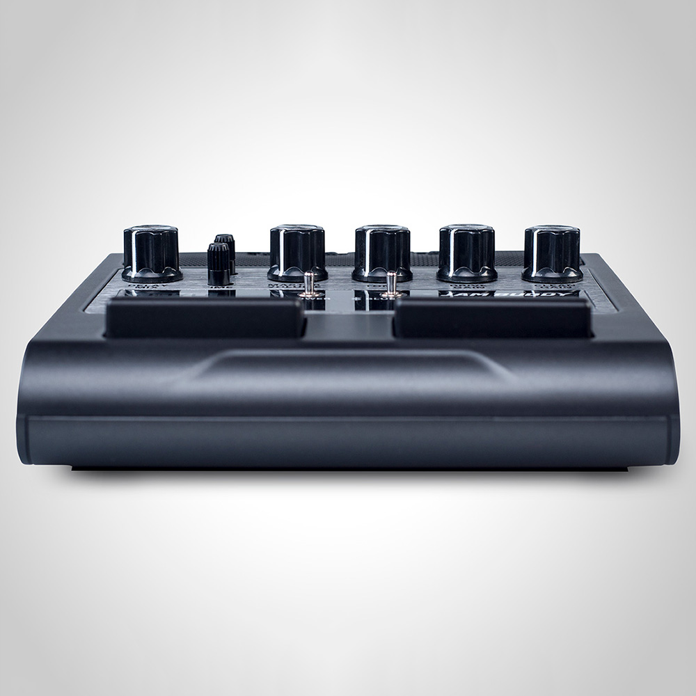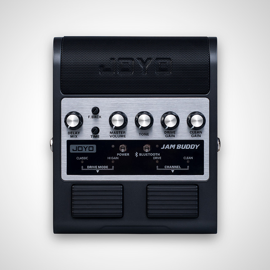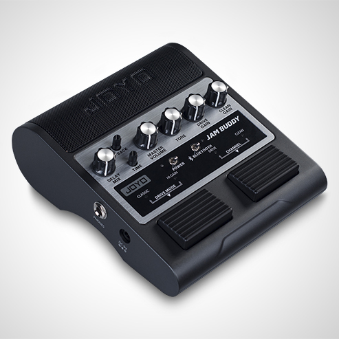 Nagyon praktikus gyakorló eszköz: kétcsatornás erősítő szimulátor beépített hangszórókkal, visszhanggal és Bluetooth csatlakozási lehetőséggel a saját backing track-ek megszólaltatására. Mindez pedál kivitelben, lábkapcsolókkal vezérelhető csatornaváltással és gain fokozattal. A beépített tölthető akku 3 óra használatot biztosít.