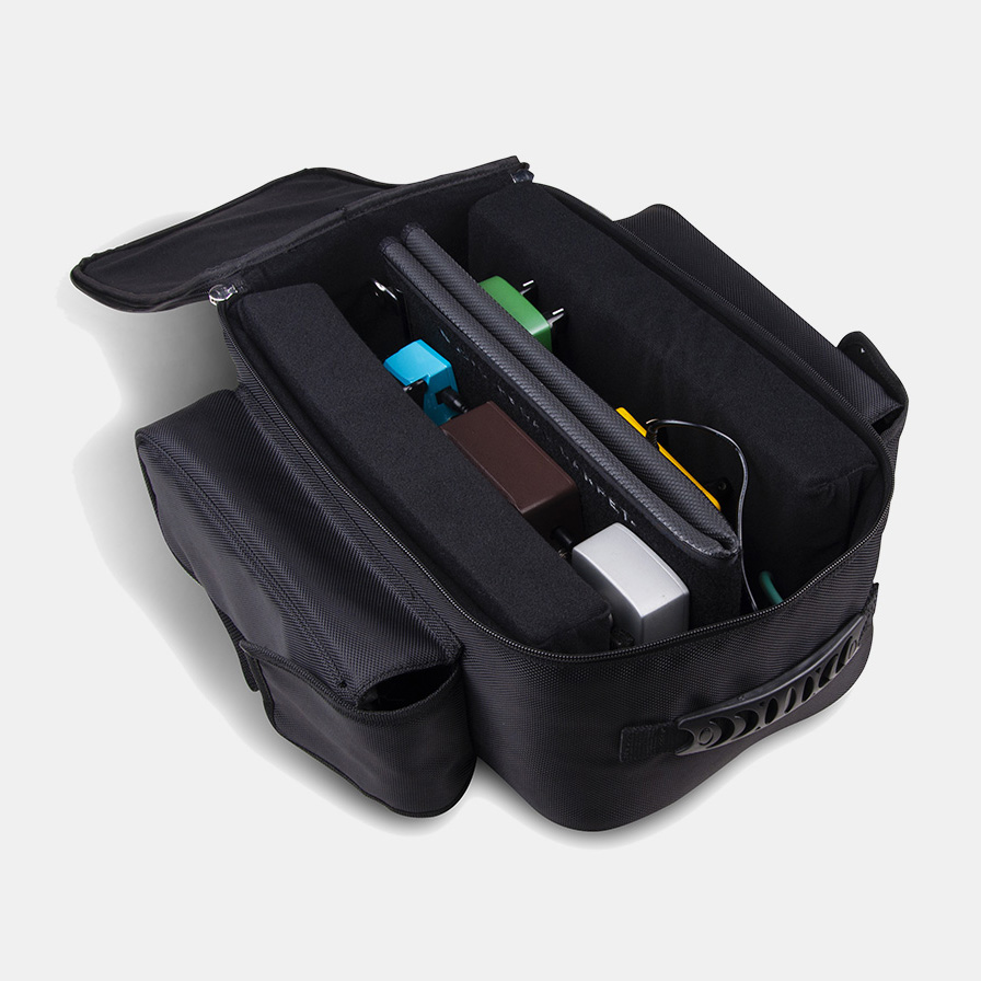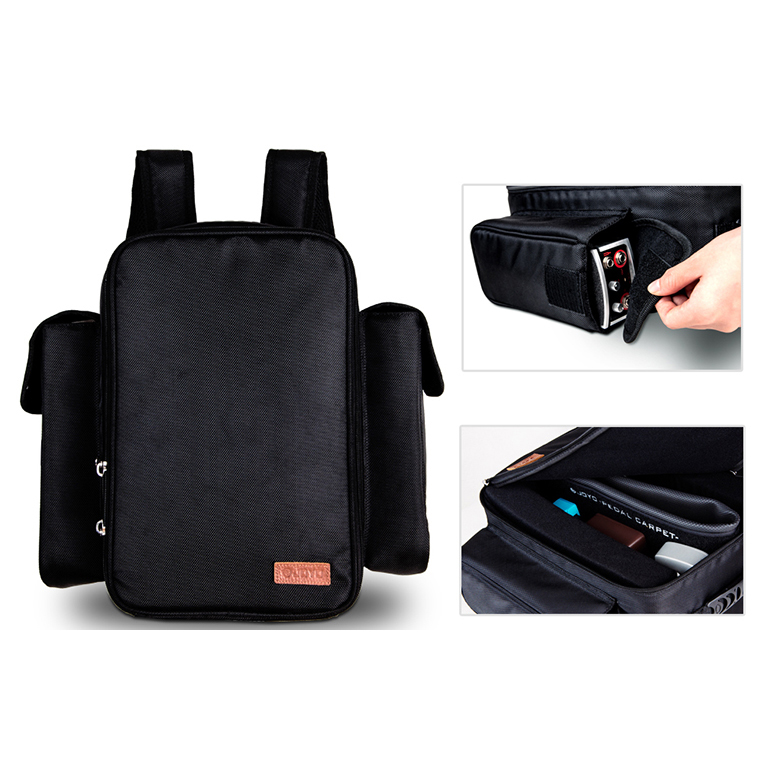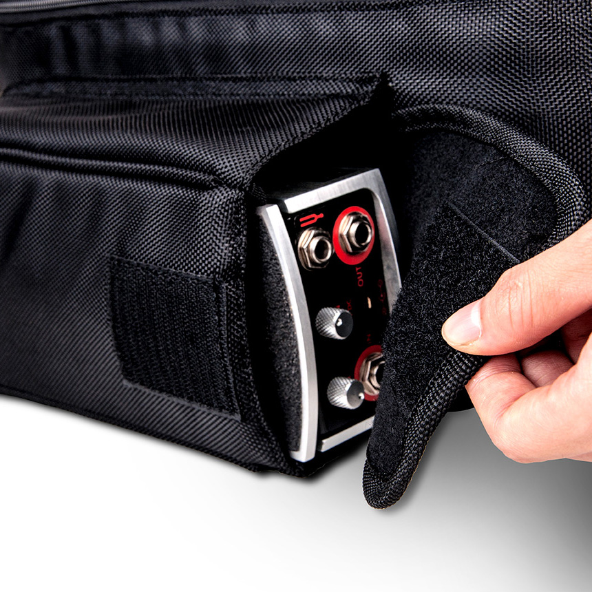 Mindkét oldalon találhatók olyan zsebek, amelyeket kifejezetten wah-wah vagy hangerő pedálok, kábelek vagy egyéb nagyobb egységek számára méreteztek.