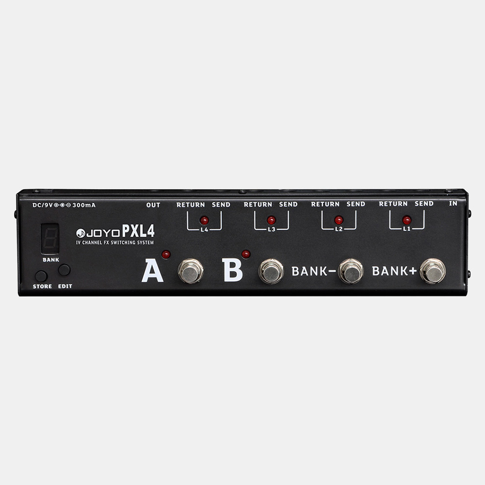 4 effektpedál kezelésére alkalmas rendszervezérlő, 16 preset beállítással.