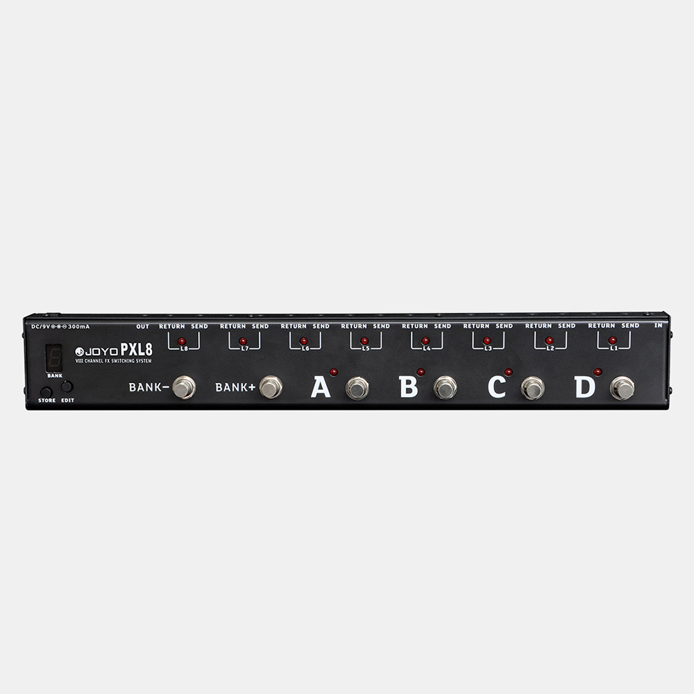 8 effektpedál kezelésére alkalmas rendszervezérlő, 32 preset beállítással.
